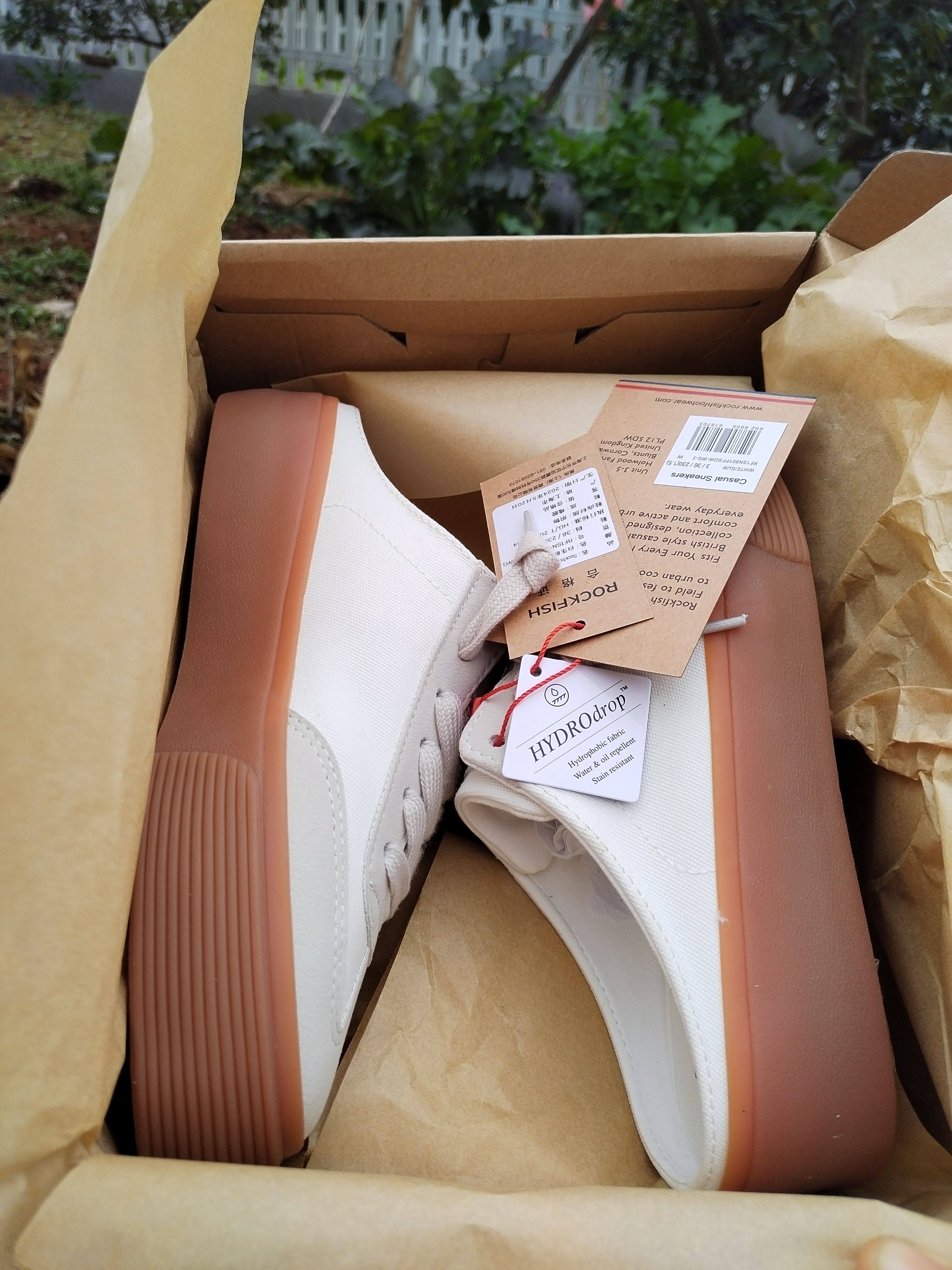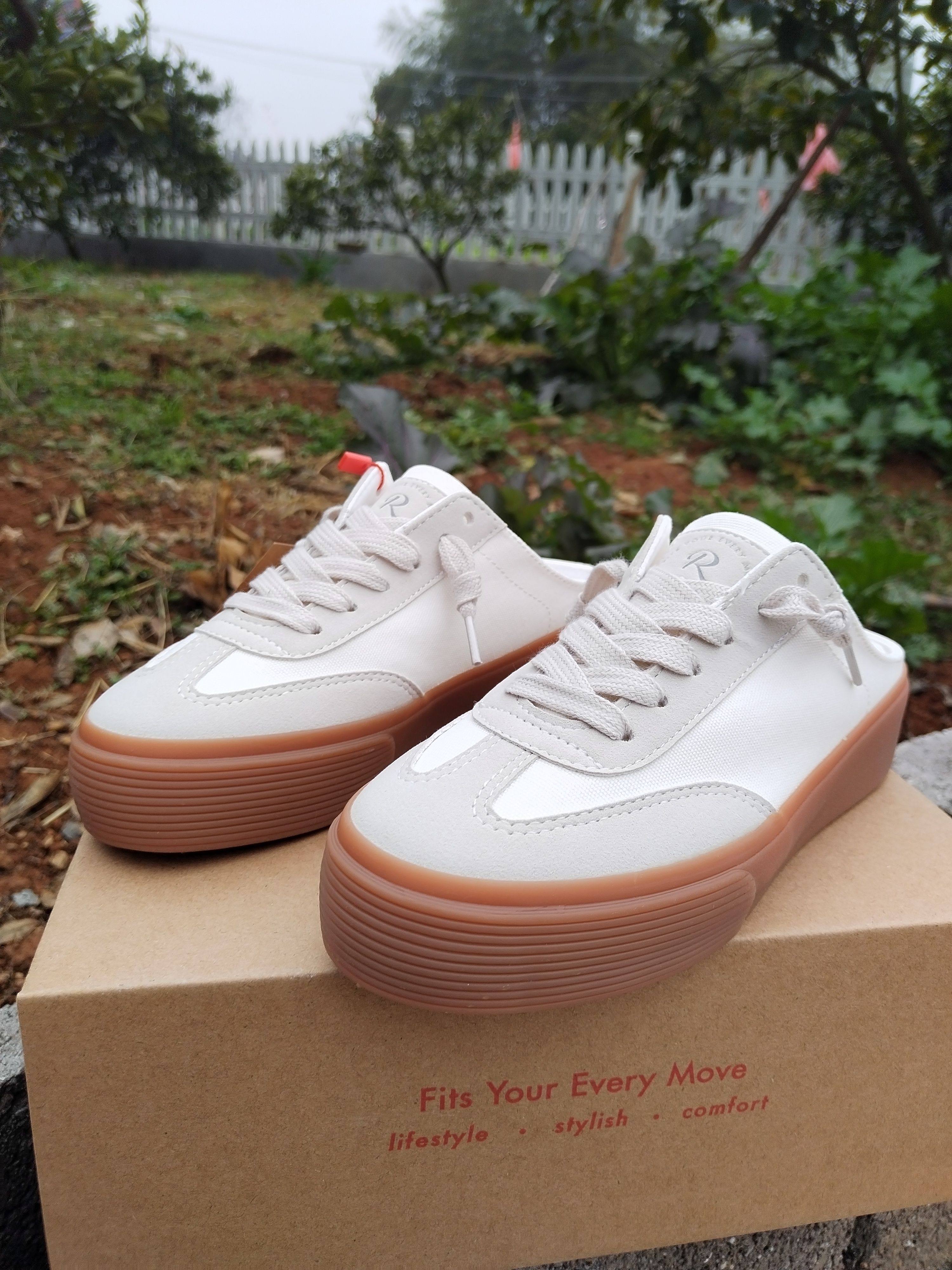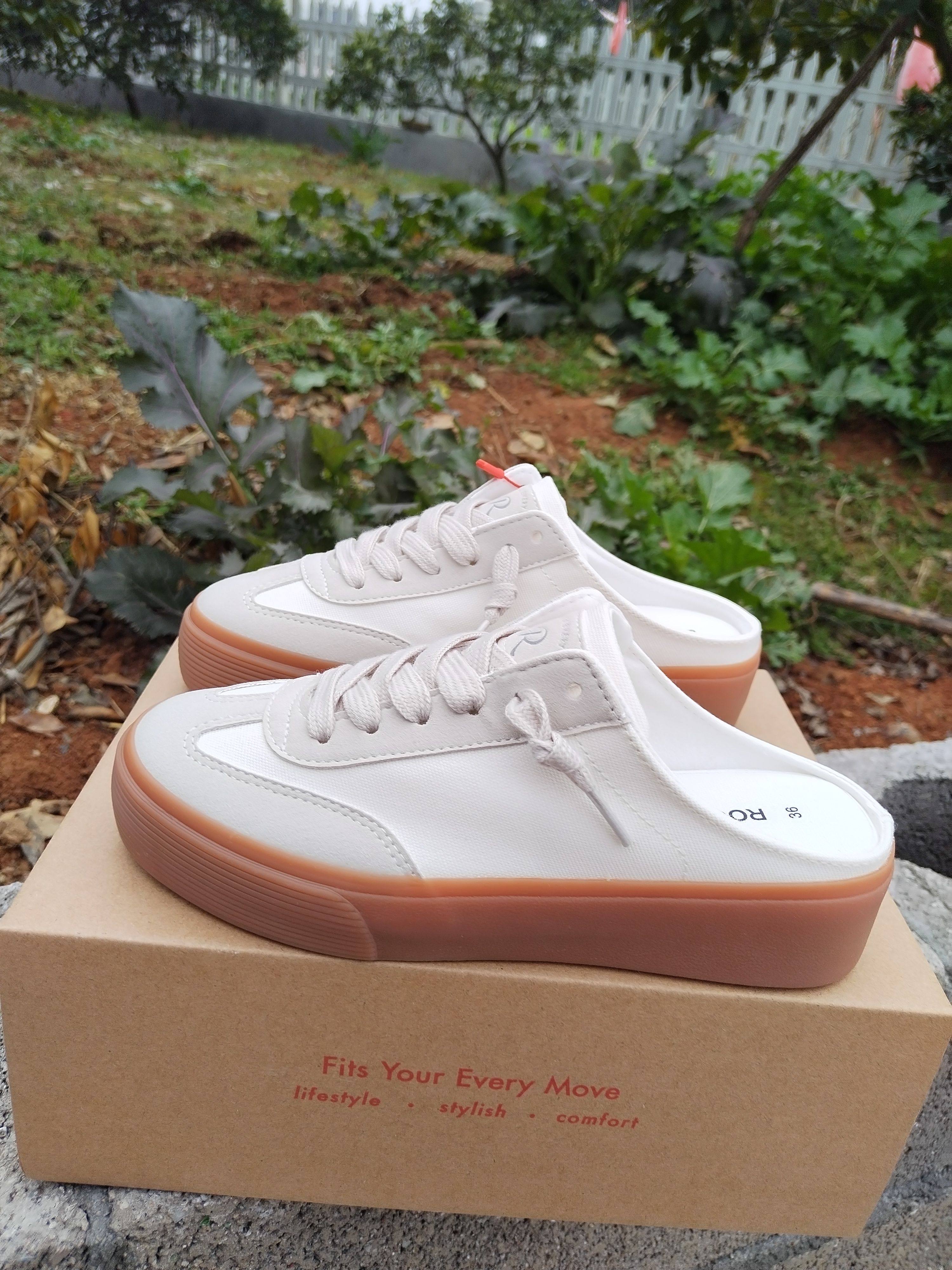 Rockfish防泼水德训半拖女生厚底松糕帆布休闲鞋微瑕超值捡漏