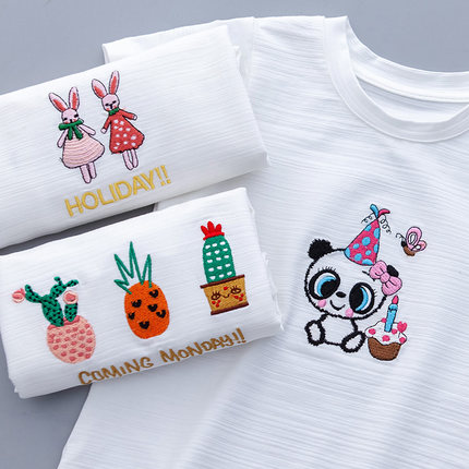 断码清仓 女童竹节棉短袖t恤女宝宝白色夏装儿童卡通上衣薄款体恤