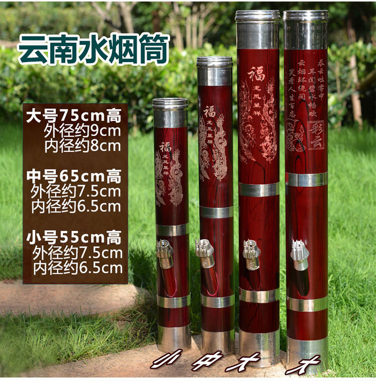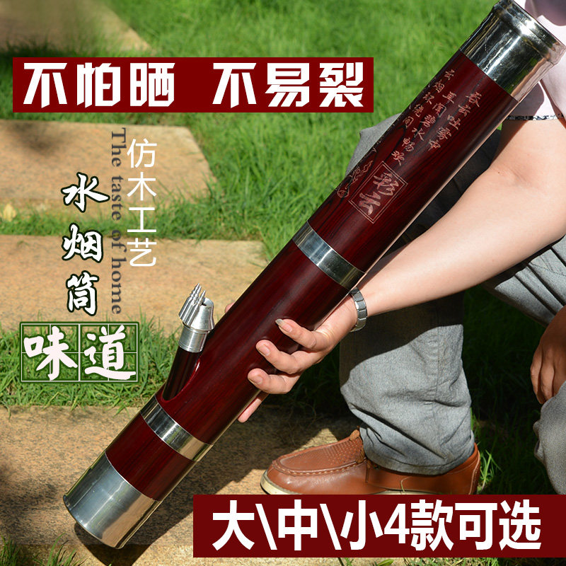 云南精品水烟筒仿木水烟袋不锈钢包边烟斗竹子水烟桶老式烟壶包邮