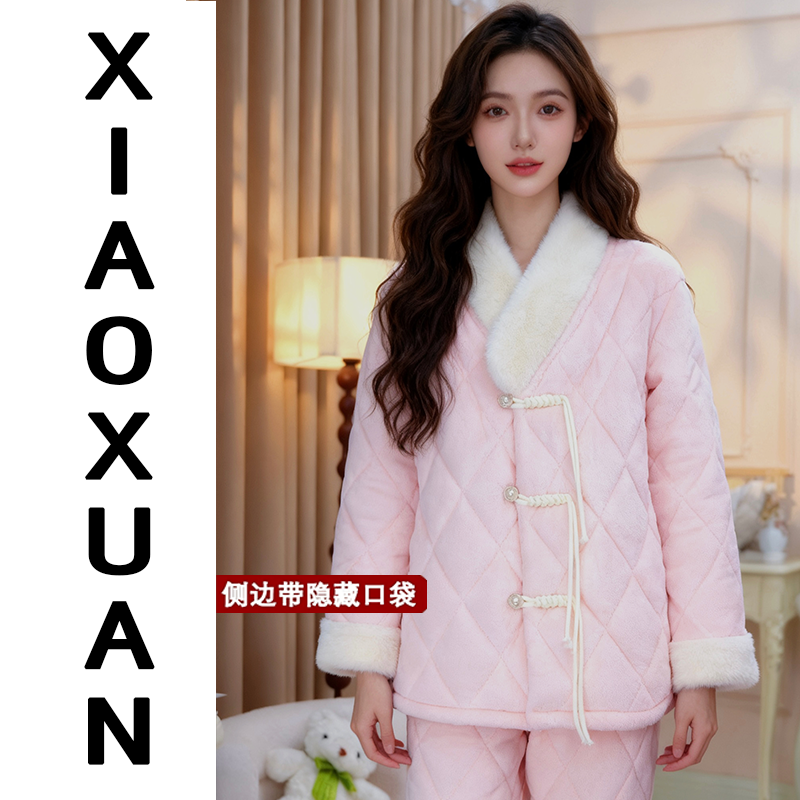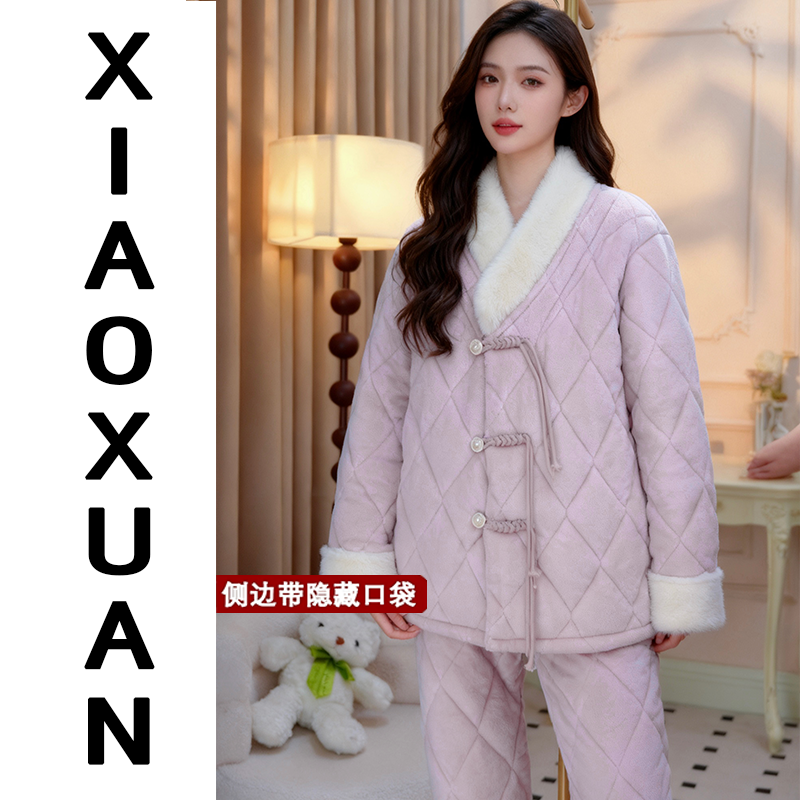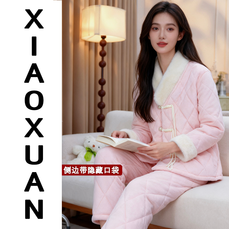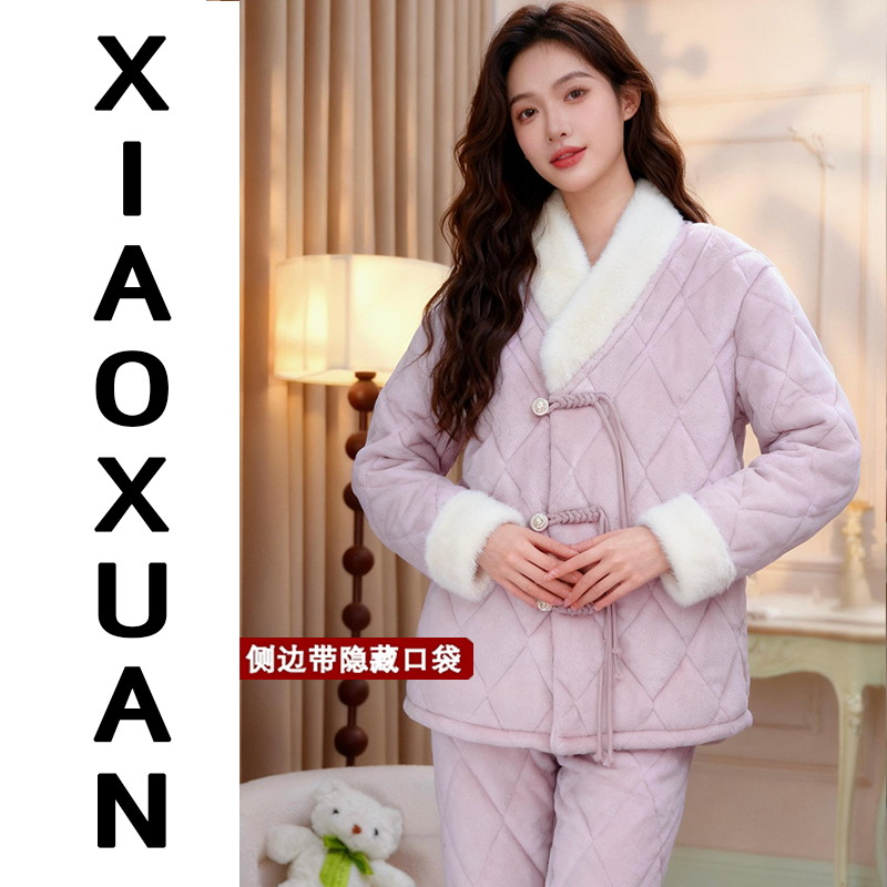 【留洋千金】新中式国风新款冬季加厚三层保暖加厚加绒居家服