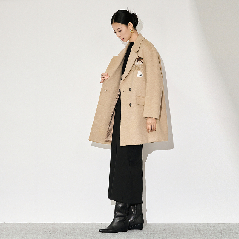 XG雪歌流苏长袖毛呢外套时尚冬季新款绵羊毛大衣女