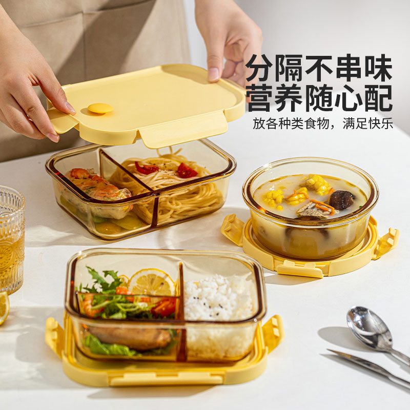 摩登主妇微波炉专用饭盒加热食品级密封保鲜盒带盖玻璃水果便当盒