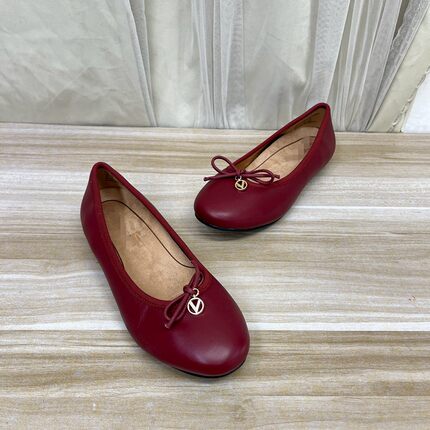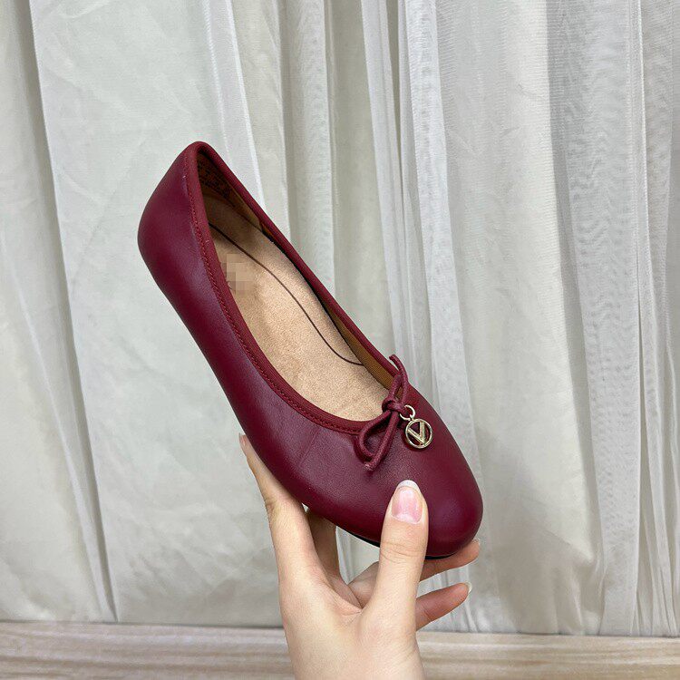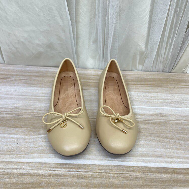 Lady Shoes外贸原单女鞋真皮新款圆头浅口蝴蝶结平底一脚蹬单鞋