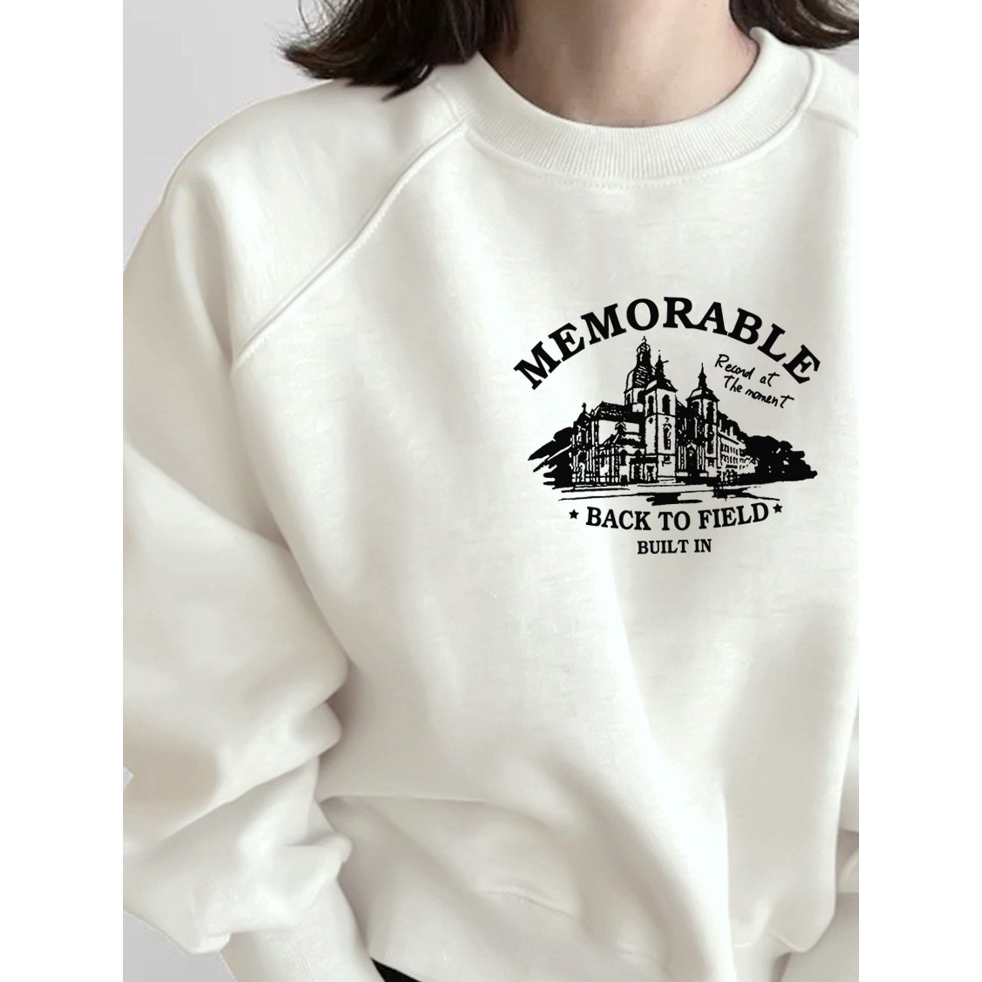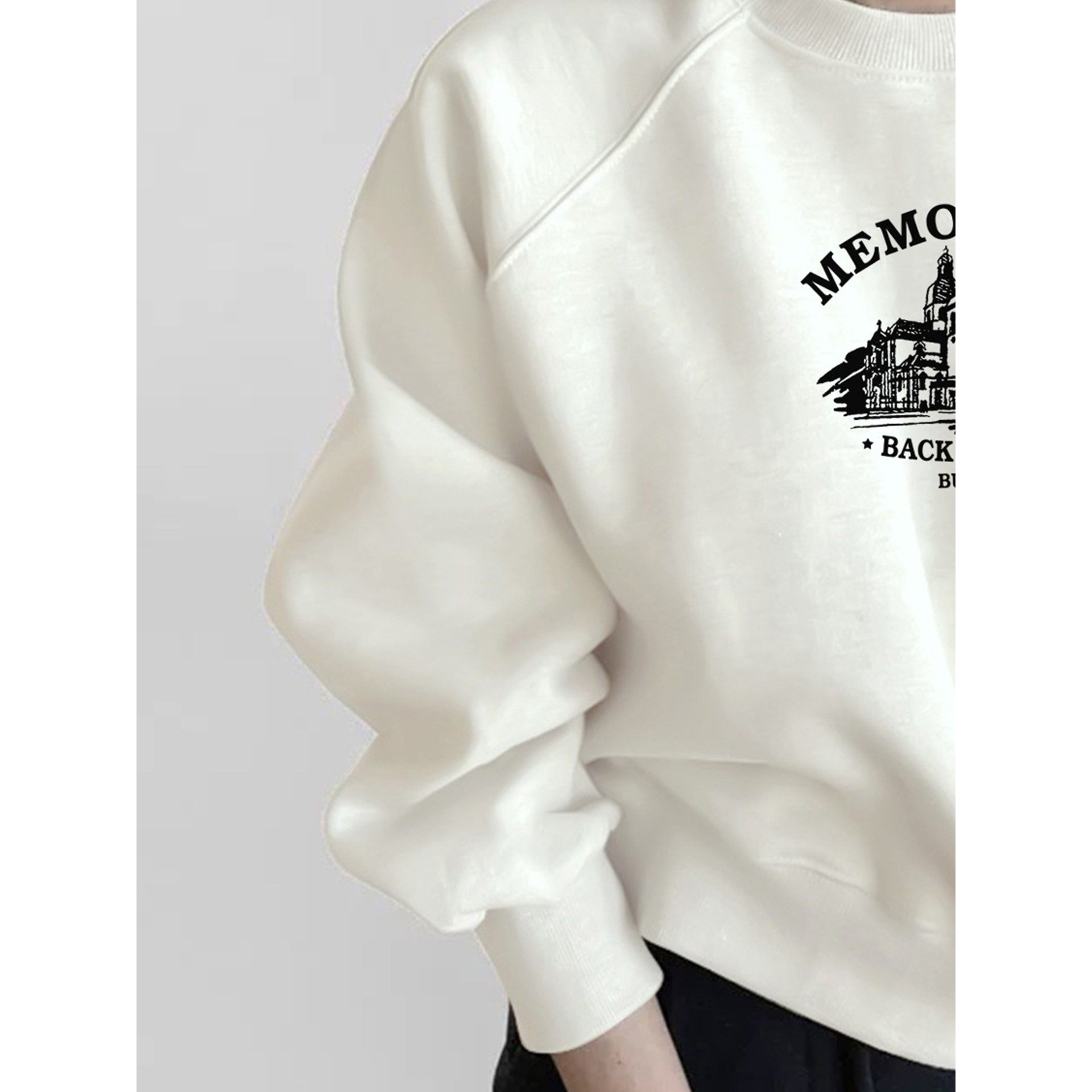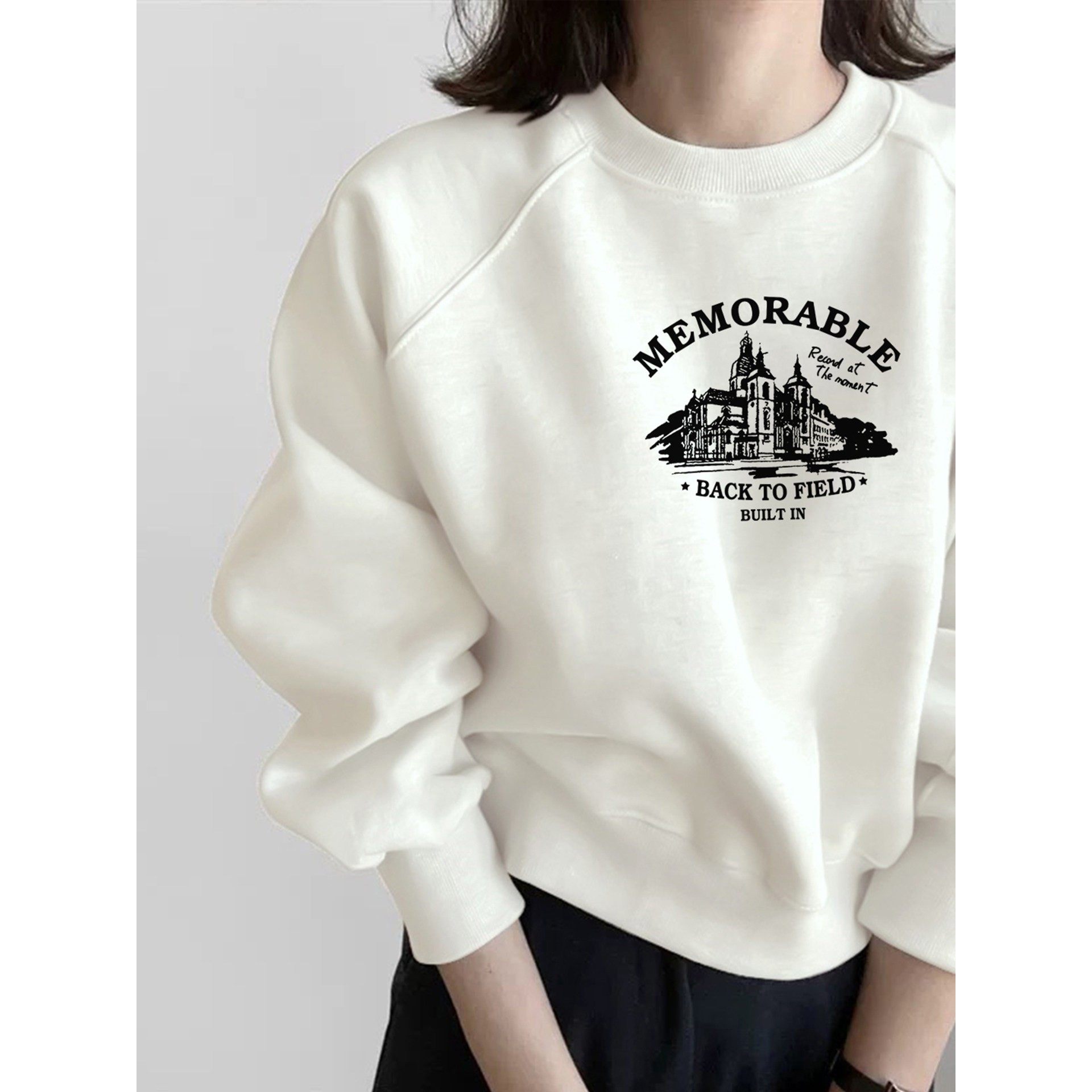 美式圆领加绒卫衣女秋冬季新爆款设计感宽松显瘦洋气上衣白色短款