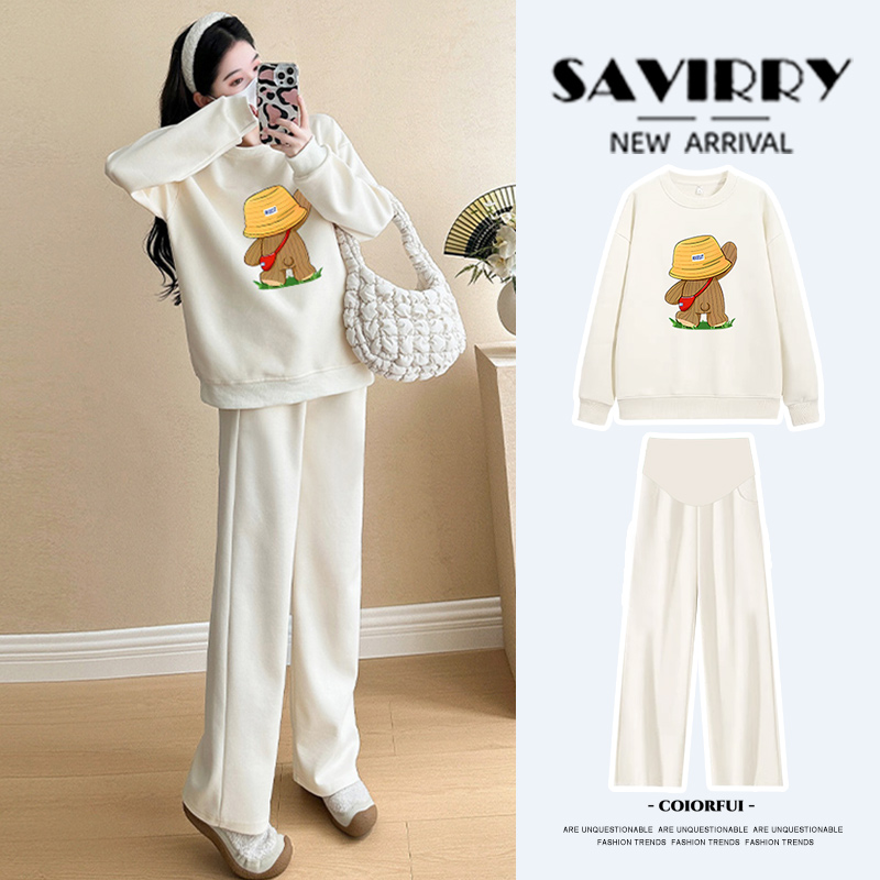 大码孕妇装套装2025秋季新款孕妈穿搭春秋卫衣阔腿裤两件套200斤