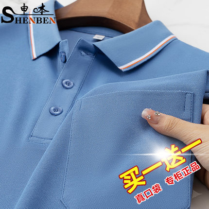 申本新款正品夏季男士短袖t恤翻领polo衫重磅半袖体恤爸爸装上衣