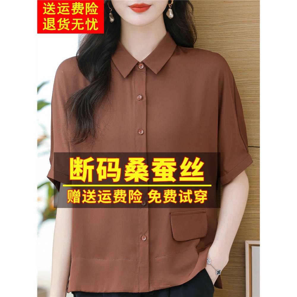 大牌重磅真丝衬衫女短袖2024新款夏装妈妈桑蚕丝上衣半袖体恤小衫