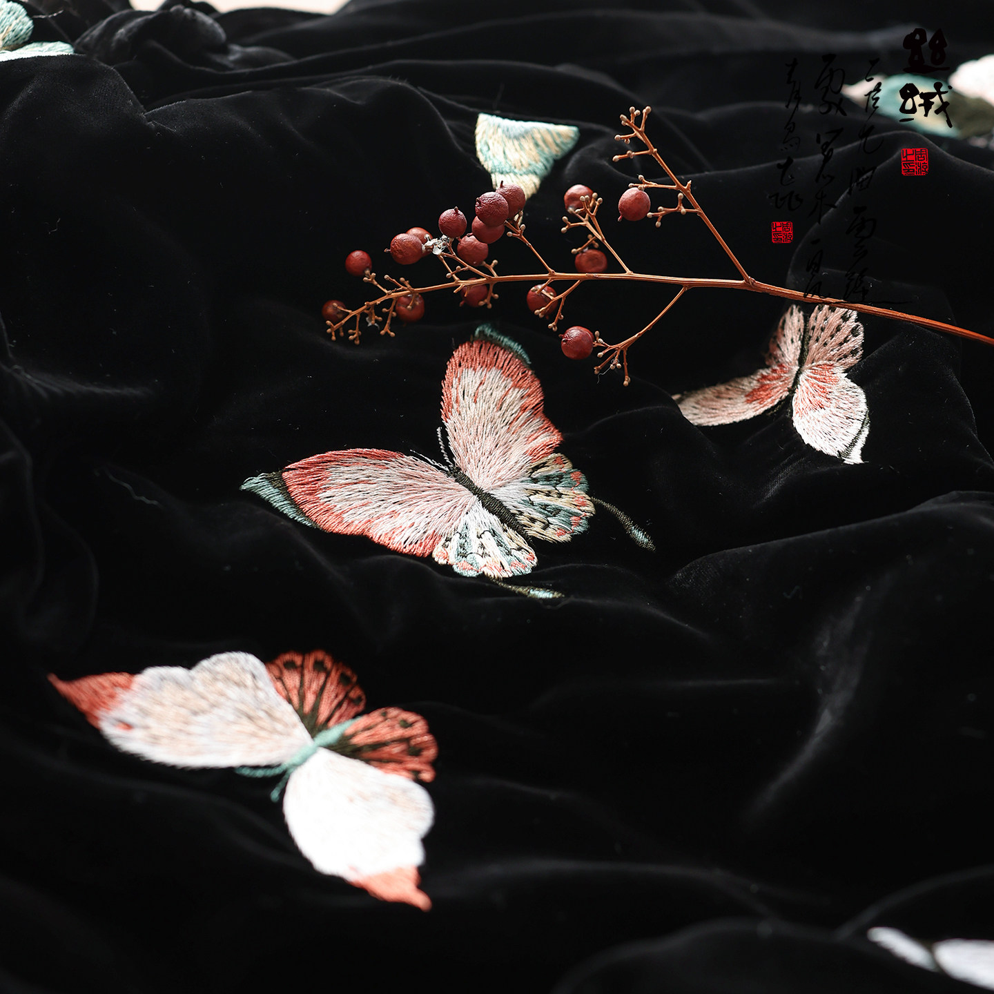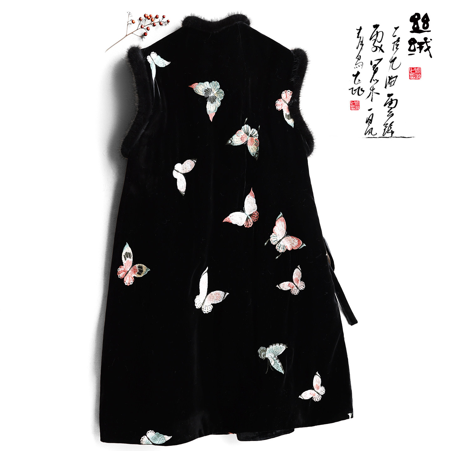 云澍原创真丝绒刺绣新中式国风水貂毛圆领加棉系带马甲连衣裙冬季