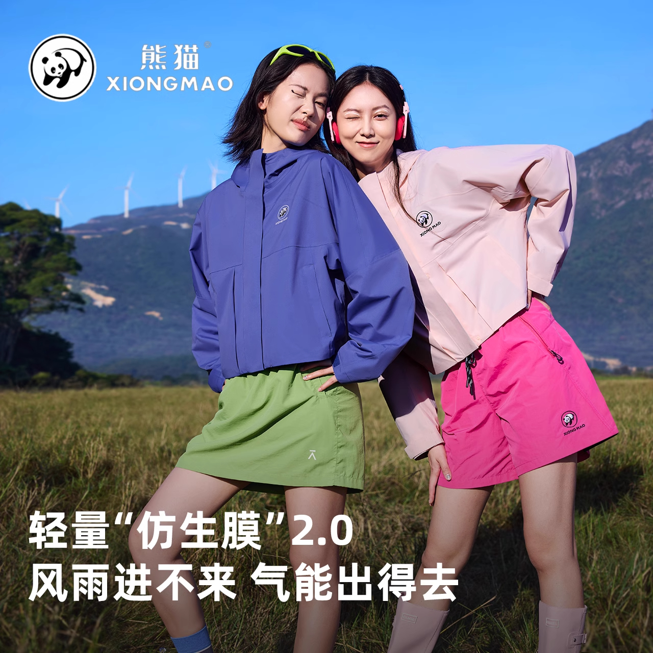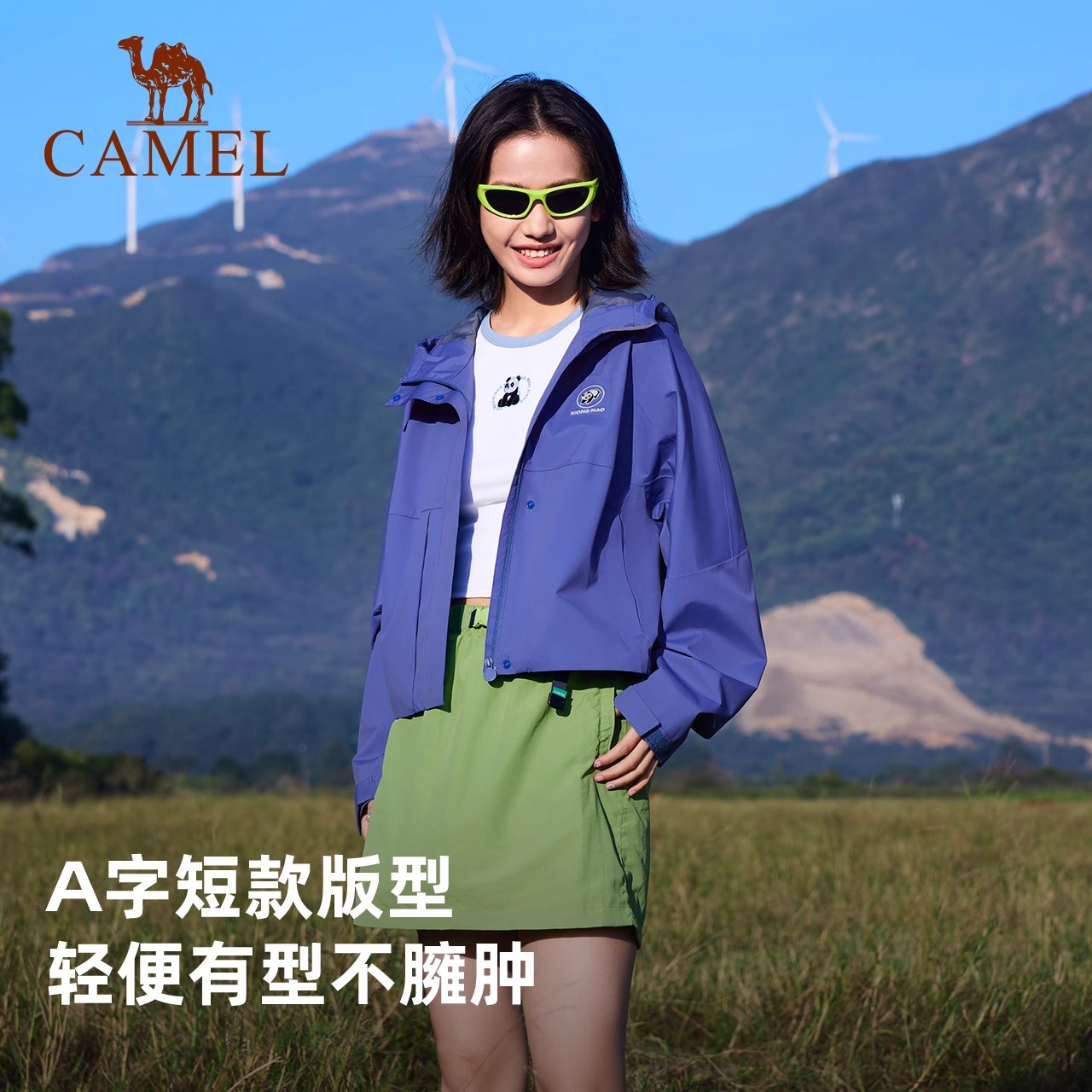 骆驼熊猫冲锋衣女款2025年春夏新款防风防水短款正品单冲外套女