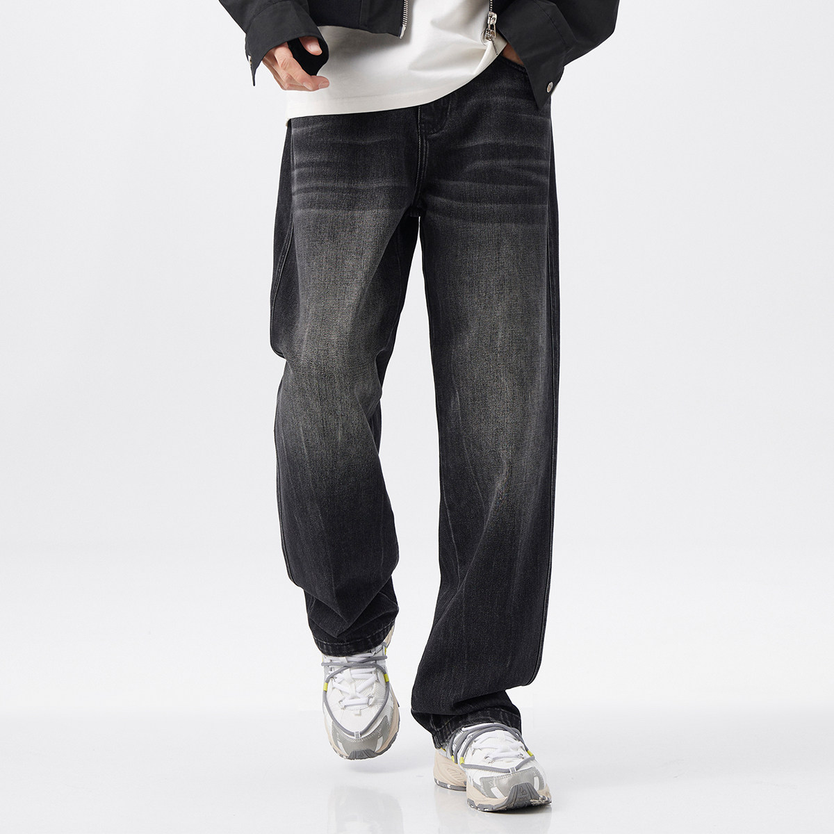 2026春夏季美式复古水洗牛仔裤男潮加厚宽松百搭直筒阔腿休闲长裤