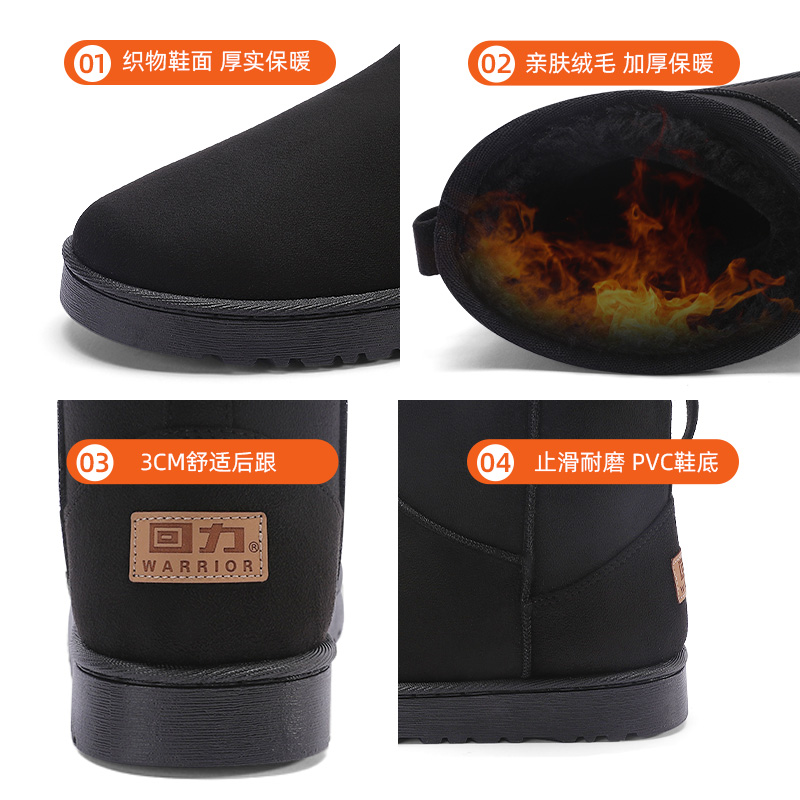 回力雪地靴男冬季加绒面包鞋男款2025新款加厚保暖男士东北棉鞋男