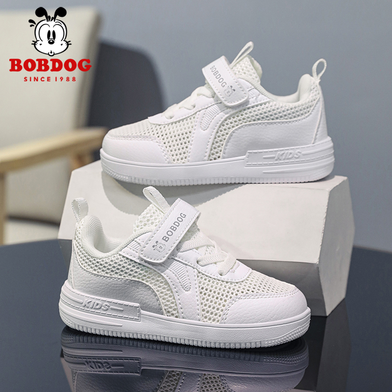 巴布豆儿童小白鞋夏季2025新款男童运动鞋白色女童网鞋小学生板鞋