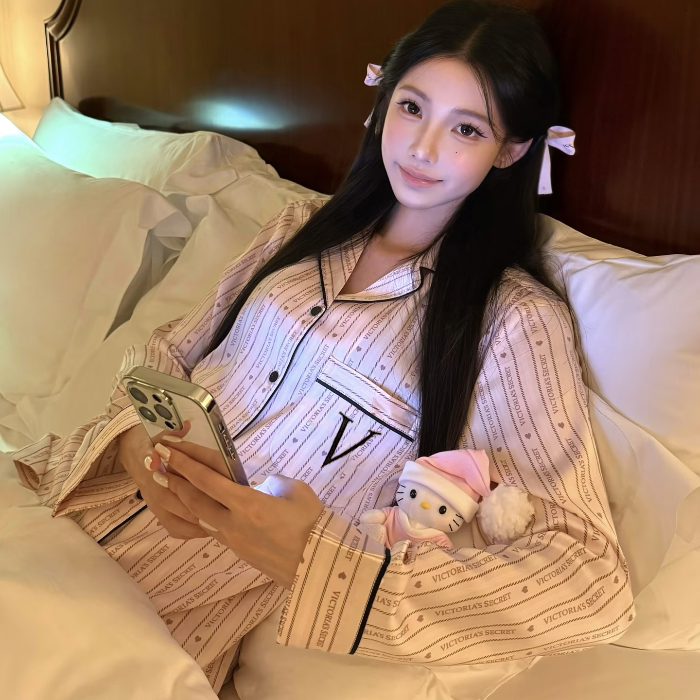 维多的秘密真丝睡衣秋冬季轻奢高级感长袖薄款条纹字母家居服套装