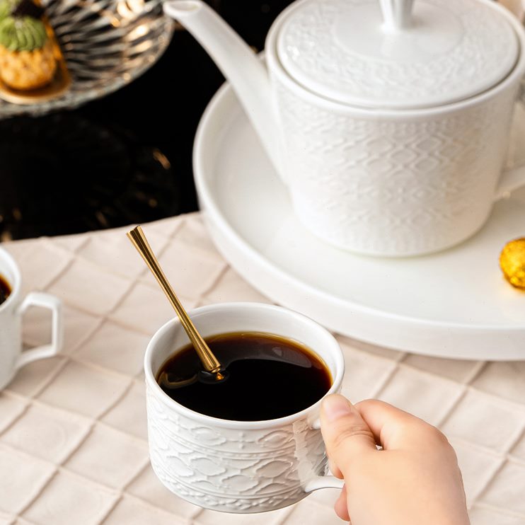 家用具套装颜值高档下午高礼盒茶具骨瓷水杯咖啡杯浮雕整套水法式