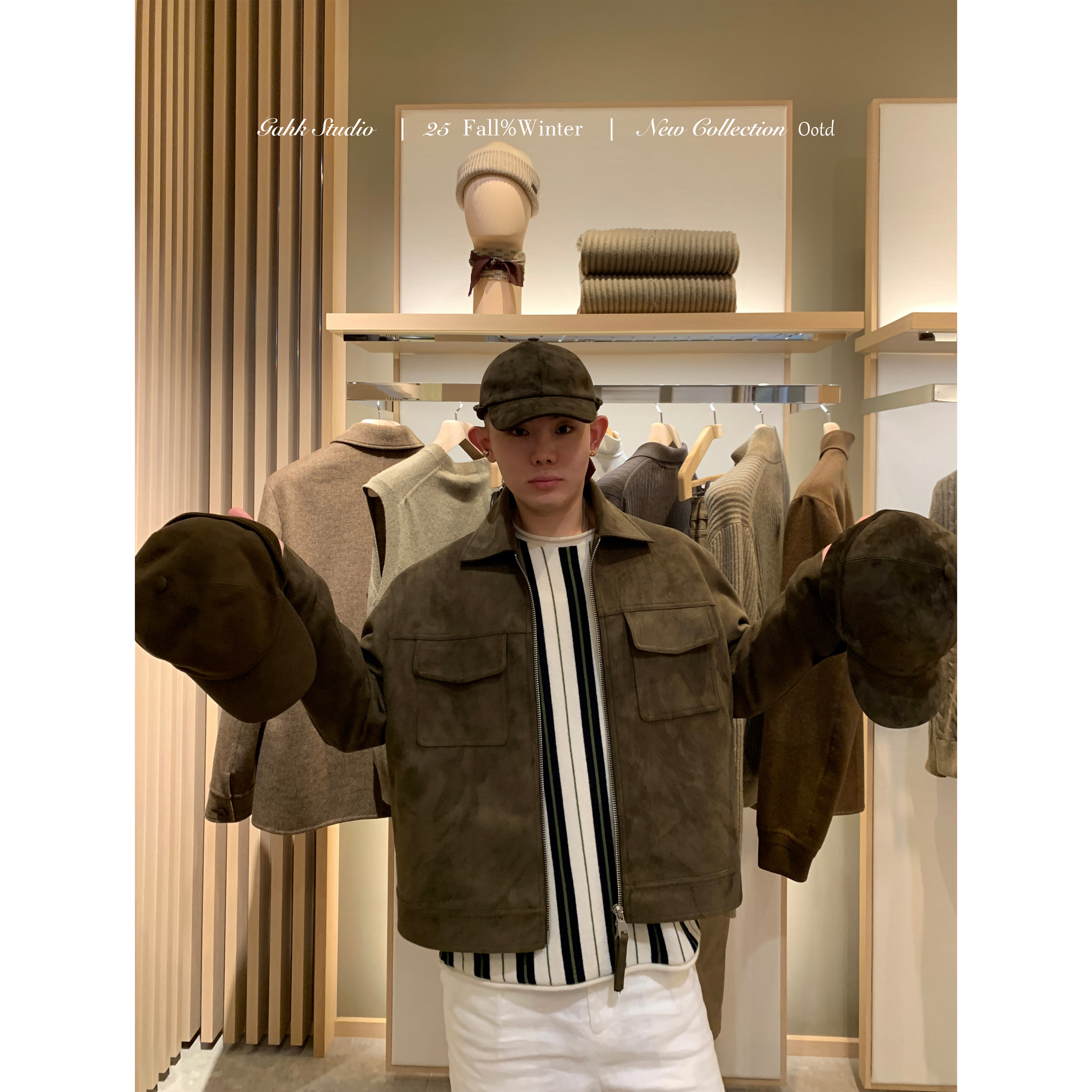GAHKSTUDIO「新贵小公子」私服L*P复古正肩修身短款环保麂皮夹克