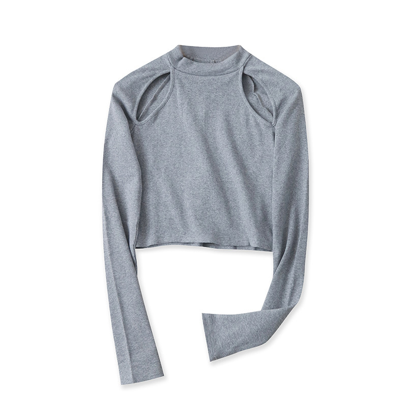 长袖螺纹打底衫百搭修身镂空短款