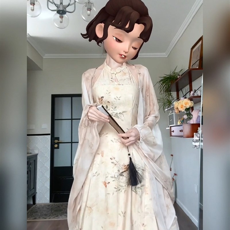 胖mm新中式国风挂脖碎花连衣裙女夏季旗袍年轻款禅意开衫两件套装