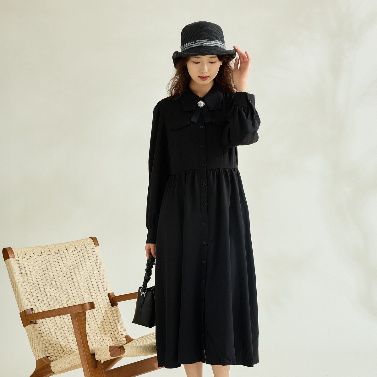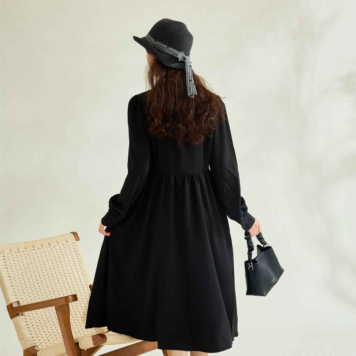 西町村屋法式领结长款连衣裙女装夏季新款复古长袖裙子AA8502009