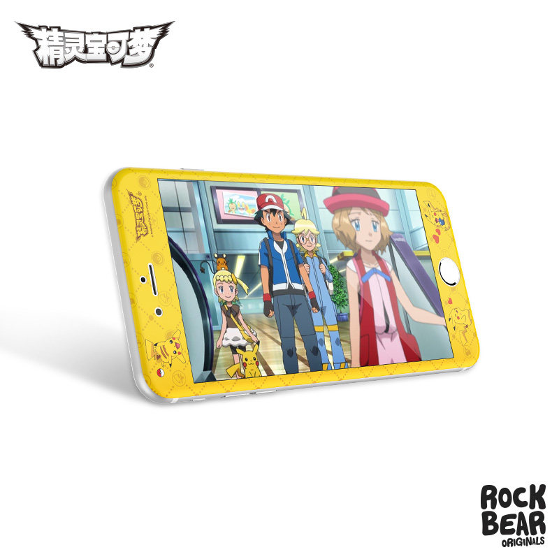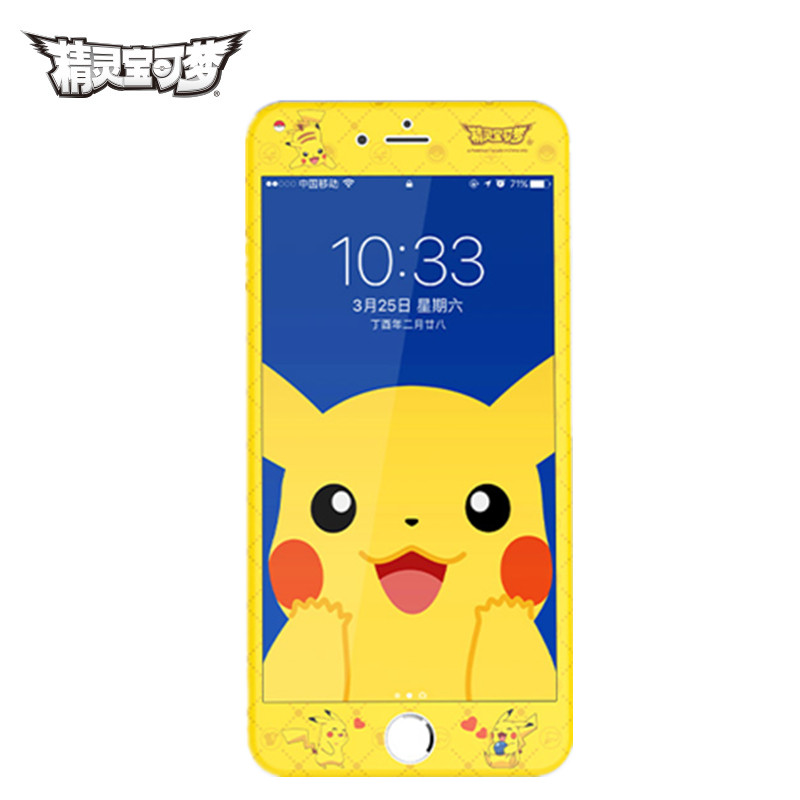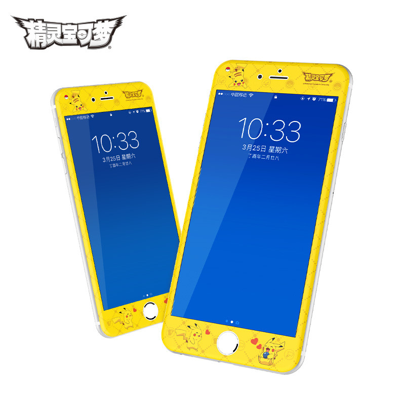 ROCK皮卡丘iPhone8钢化膜卡通彩膜SE2适用苹果6sp手机膜7plus贴膜