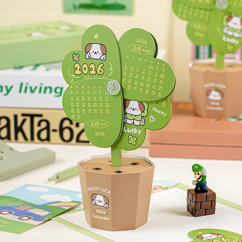 阿杂 幸运四叶草迷你diy盆栽台历2026年解压日历桌面小摆件笔筒