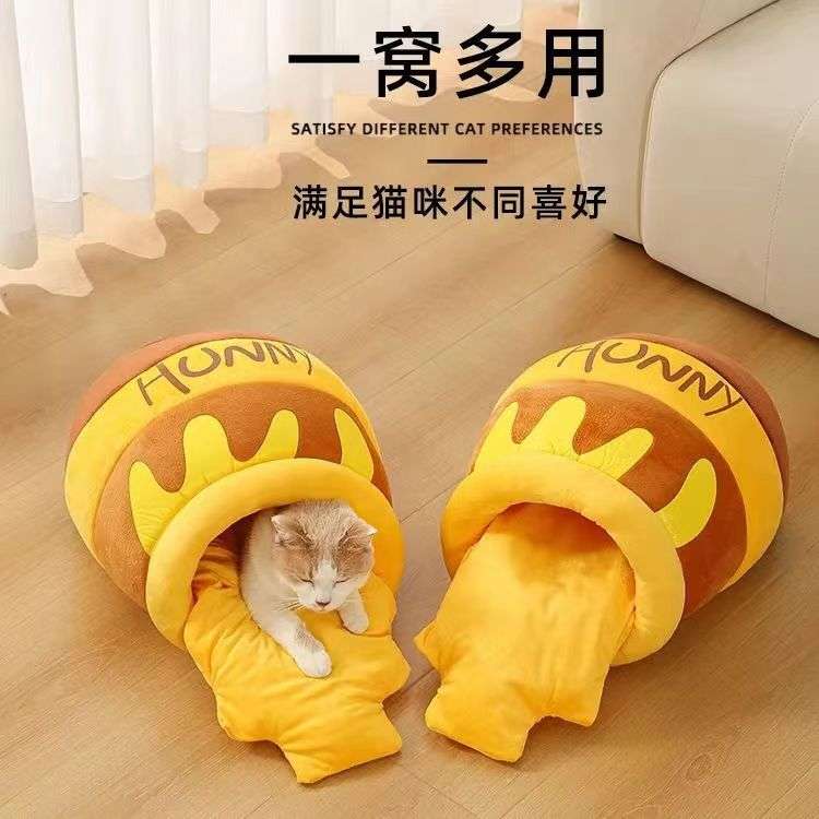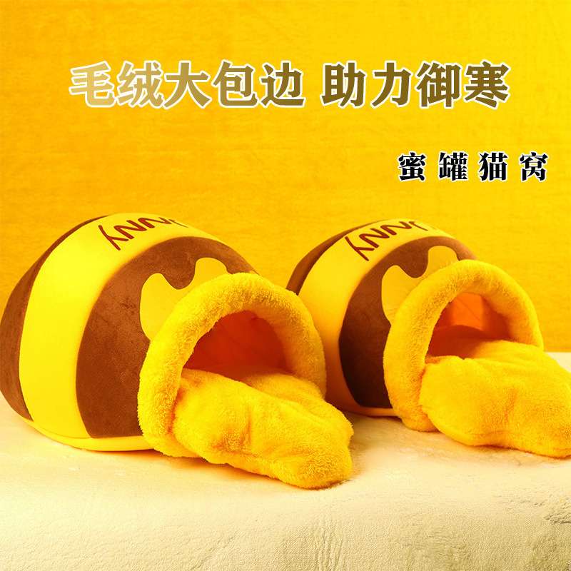 蜂蜜罐猫窝冬季保暖加厚网红小蜜蜂猫窝可爱半封闭可拆洗四季通用