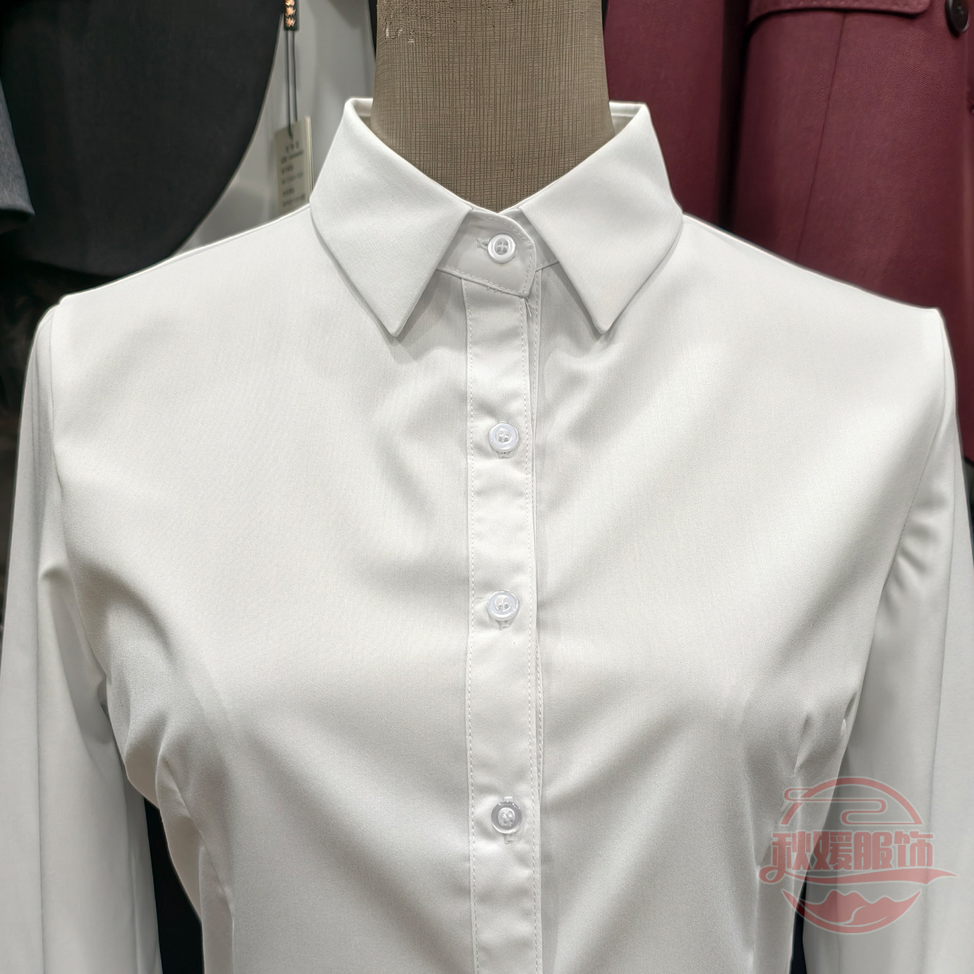 长袖白衬衫女职业正装秋季新款长袖正肩防皱正装好看独特白色衬衣
