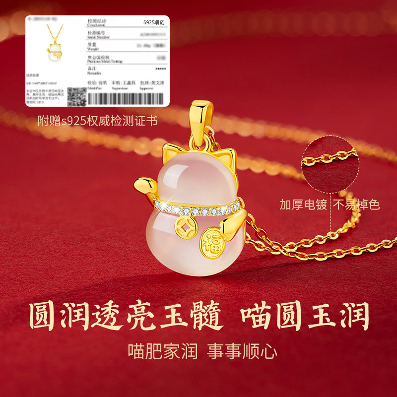 中国黄金央创项链女款生日礼物女情人节礼物送女朋友新年礼物S925