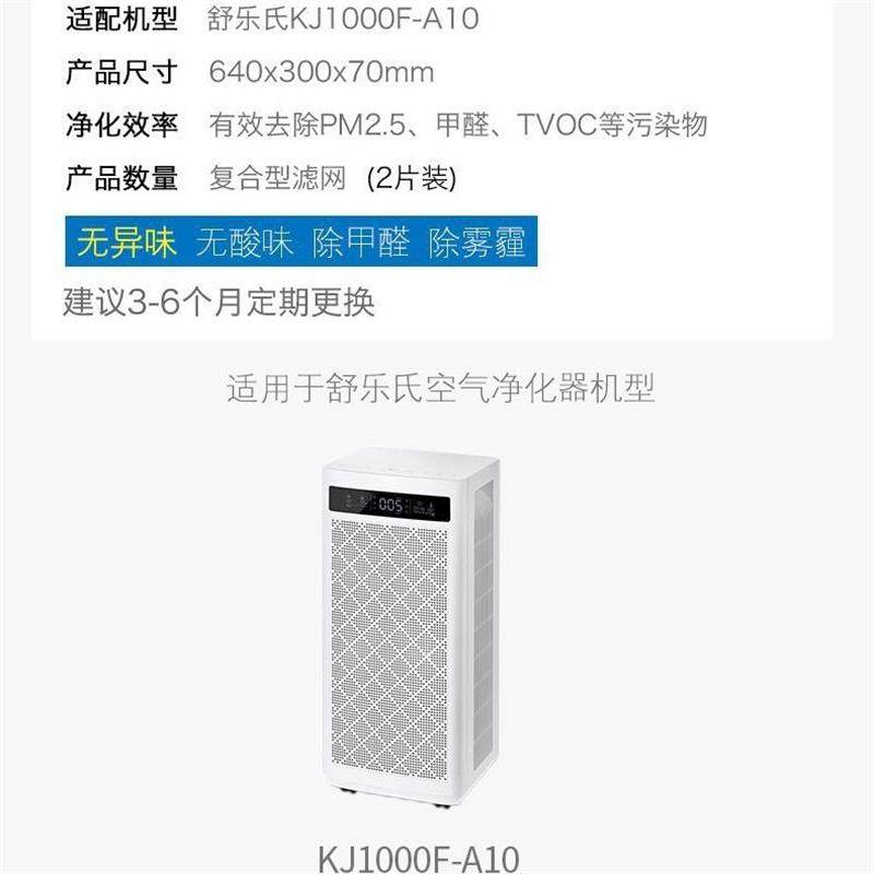 适配舒乐氏(SOLEUSAIR)空气净化器过滤网KJ1000F-A10滤芯两片装