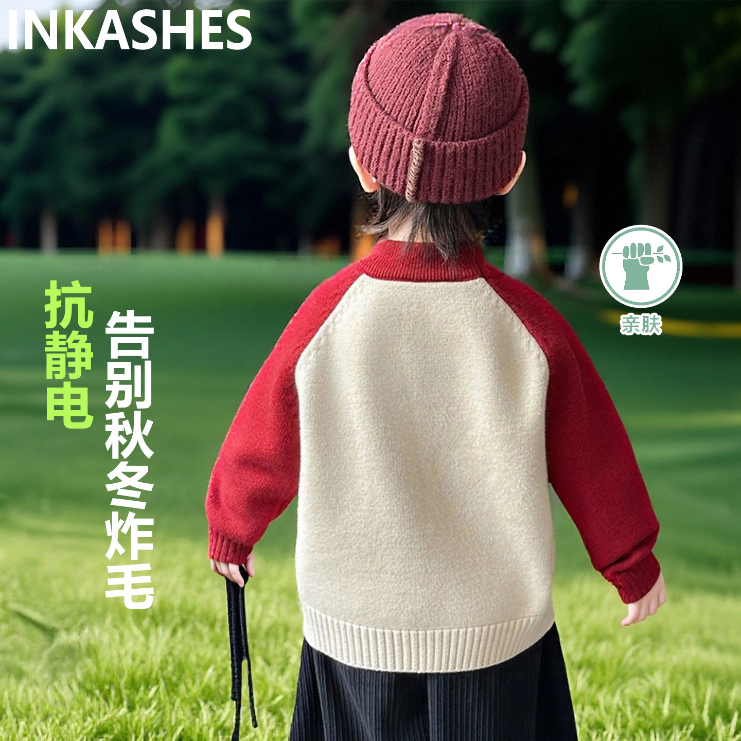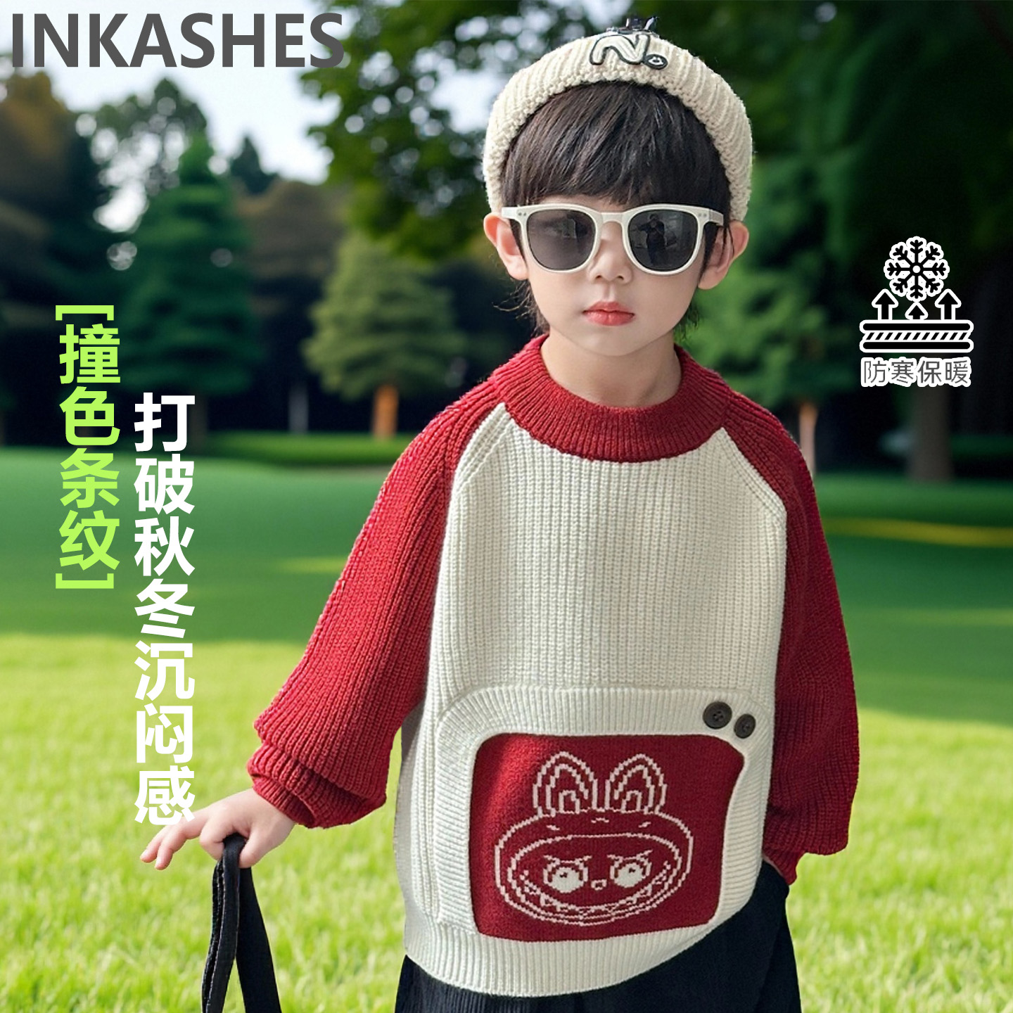 INKASHES男童毛衣加厚秋冬款2025新款宝宝上衣冬季加厚儿童针织衫