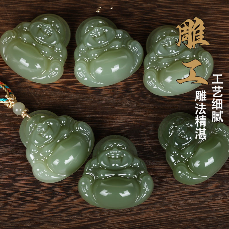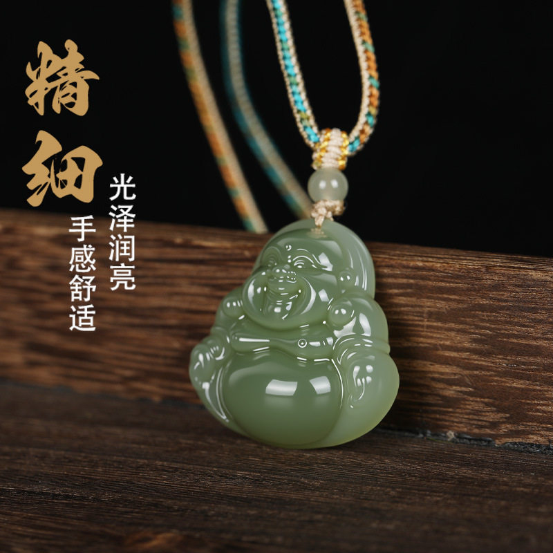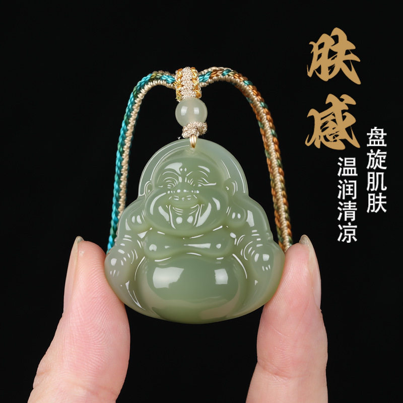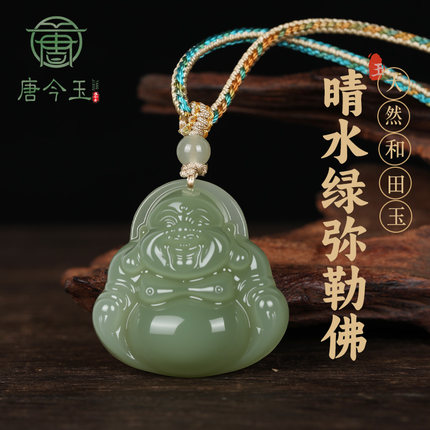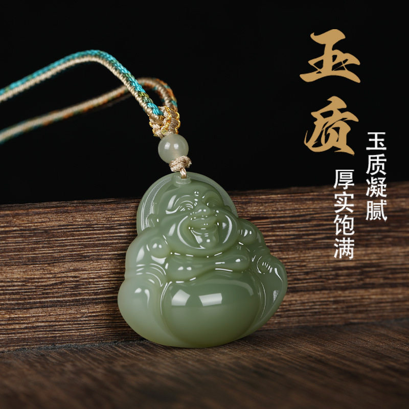 唐今玉保真和田玉30MM弥勒佛吊坠项链大肚佛晴水吊坠佛公无棉裂杂