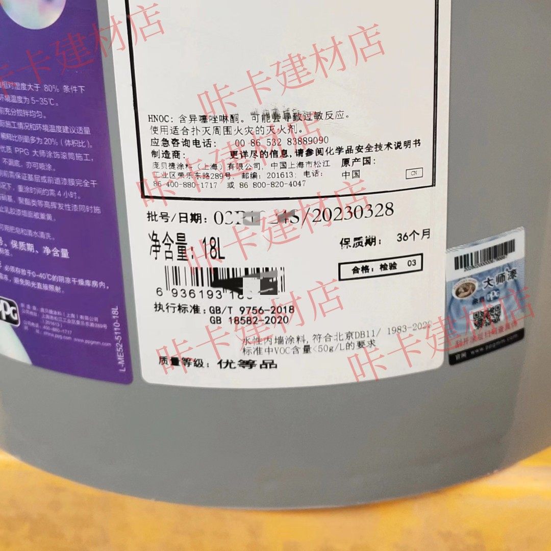 PPG大师漆乳胶漆环保净味沁瑞居优等品18L涂料油漆室内墙面漆可擦
