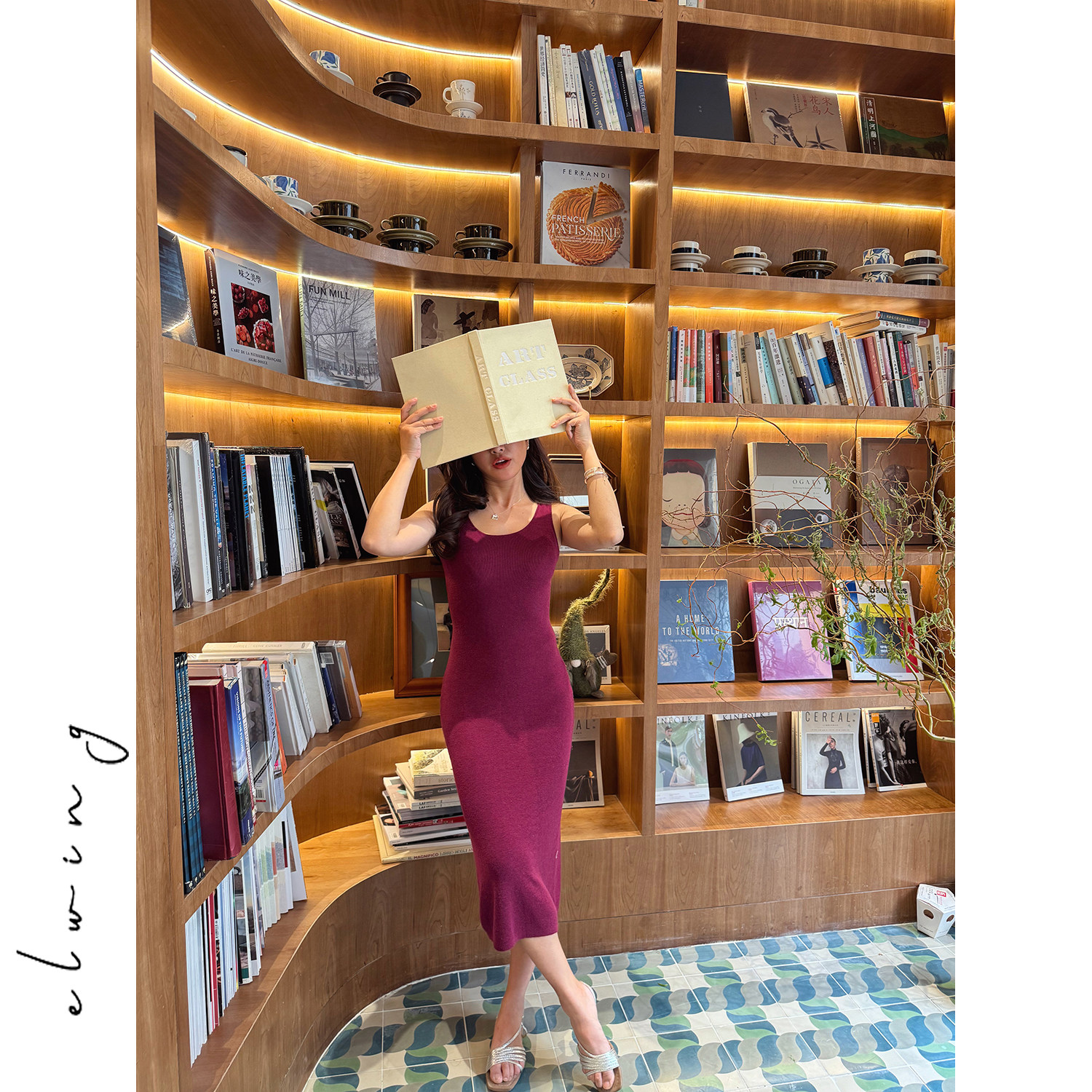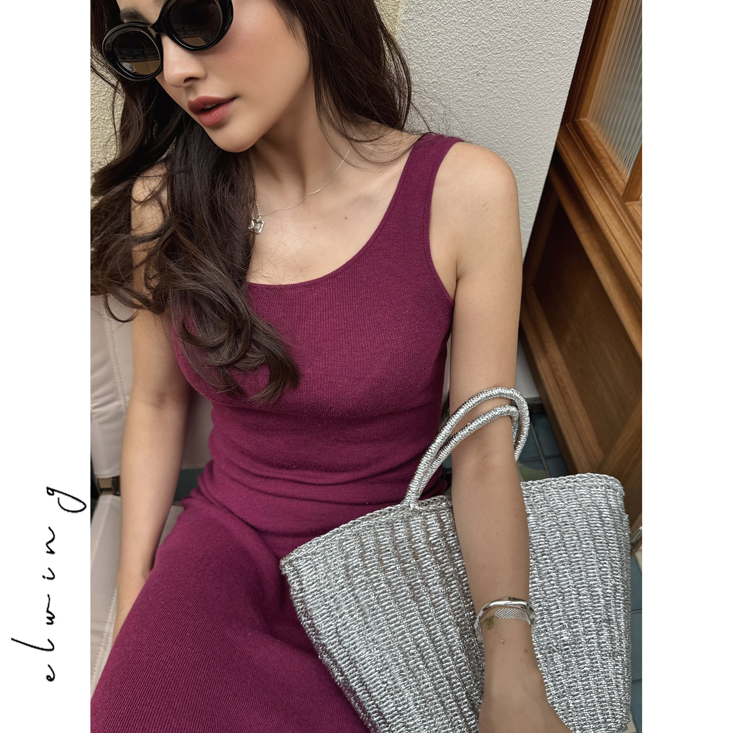 Elwing原创高弹真丝羊毛混纺针织连衣裙女夏季修身显瘦轻薄背心裙
