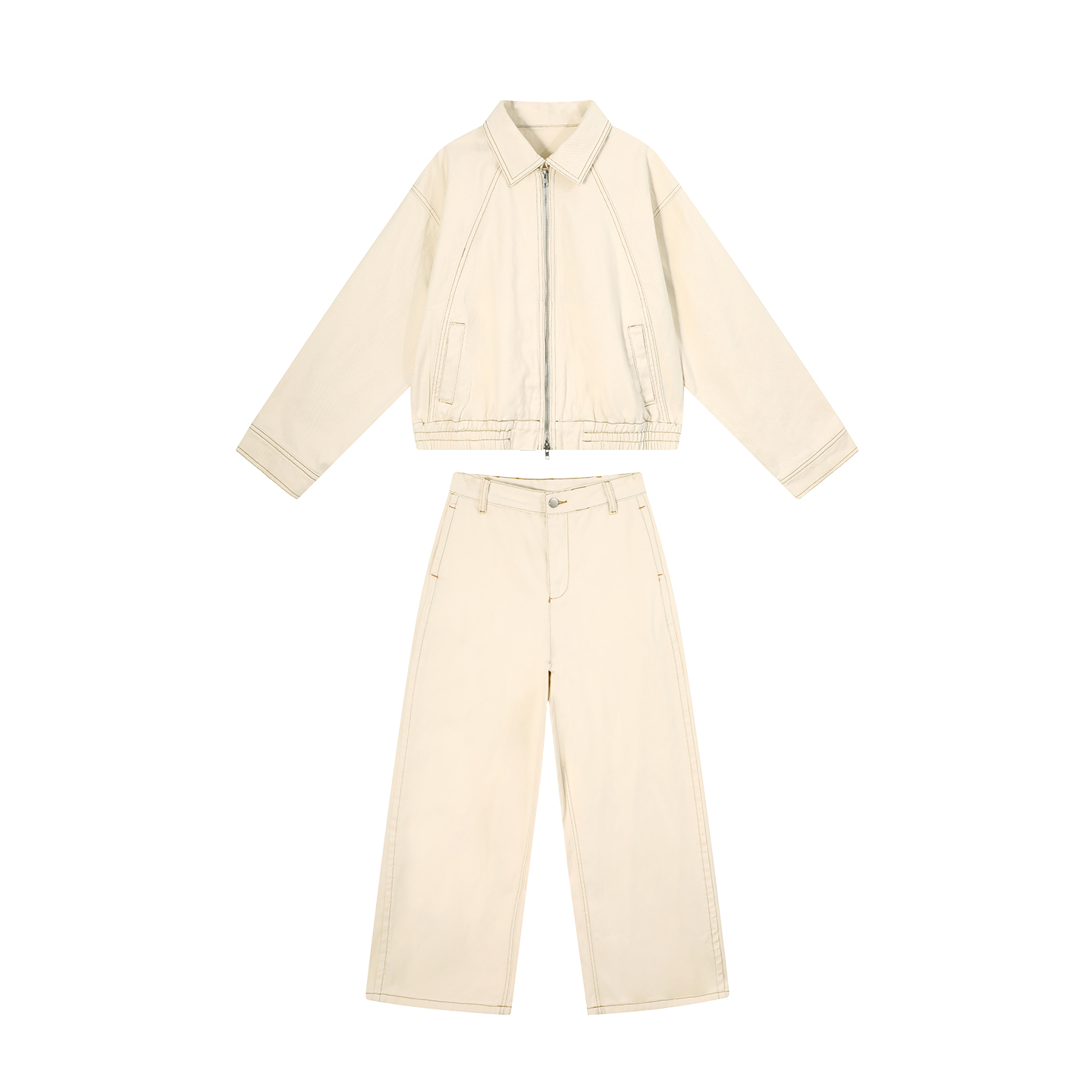 吴童童翻领宽松长袖牛仔外套女秋季新款韩系休闲显瘦上衣长裤套装