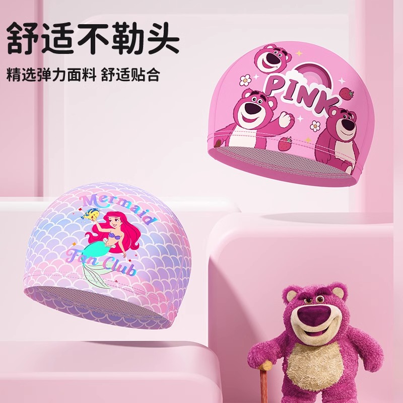 迪士尼儿童泳帽男女童通用不勒头大头围防晒布料卡通专业游泳装备