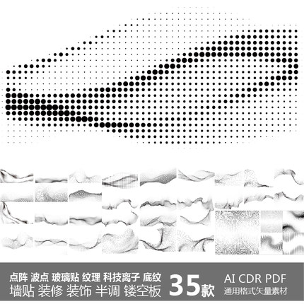 点阵渐变波点玻璃贴纹理科技离子底纹墙贴装修饰半调镂空矢量素材
