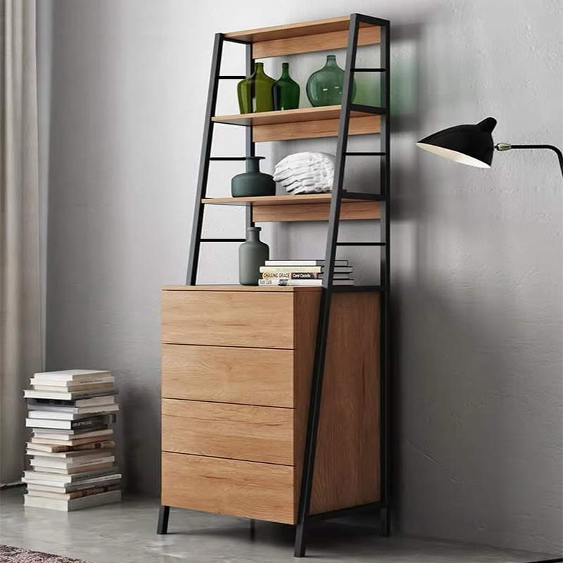 实木书架定制北欧书柜一体整墙落地置物架铁艺收纳柜靠墙多层柜子