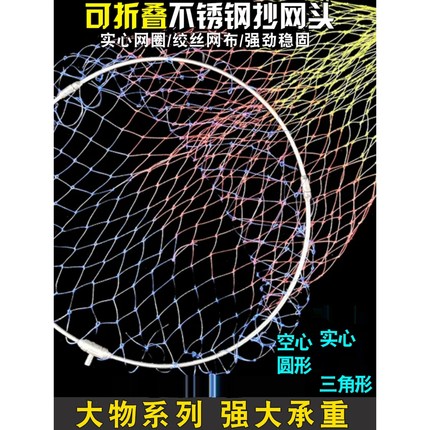 德国进口40/50/60不锈钢折叠实心抄网头捞鱼网绞丝三角防挂渔网大