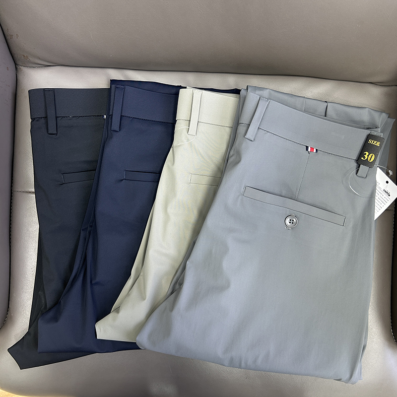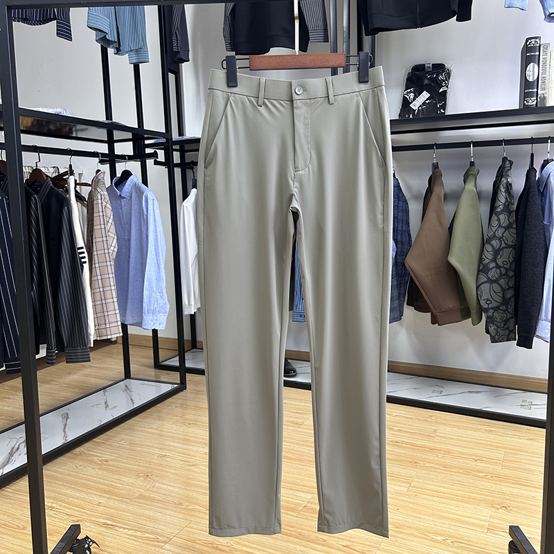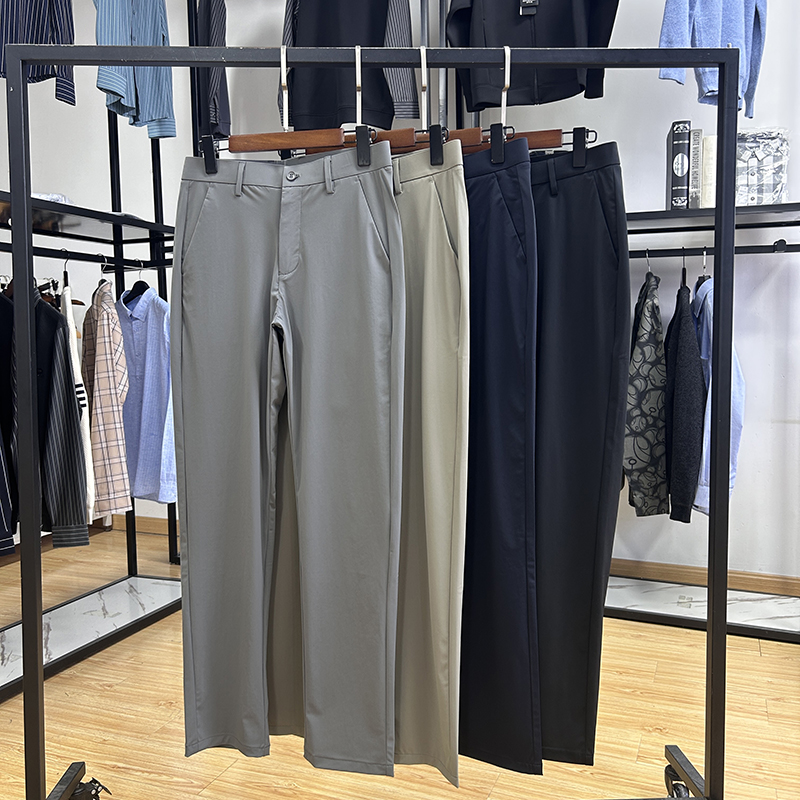 锦氨混纺速干料弹力垂感休闲商务通勤纯色男裤春夏季修身直筒长裤