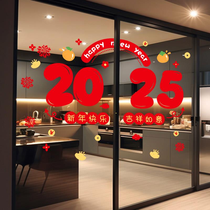 新年春节装饰2025新款窗花静电贴客厅玻璃门贴纸蛇年过年氛围布置