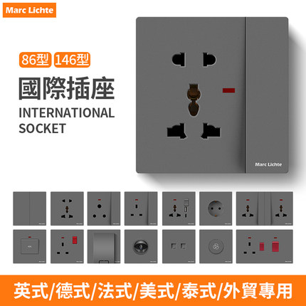 国际通用灰色13A英式带开关插座暗装港标英式新加坡插苏电源插座