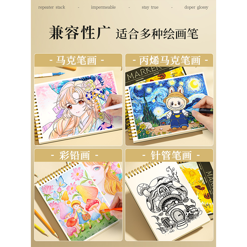 马克笔专用绘画本a4图画素描本加厚画画本子动漫马克纸丙烯笔手绘小学生画纸8开美术生专业用纸8k空白a3漫画