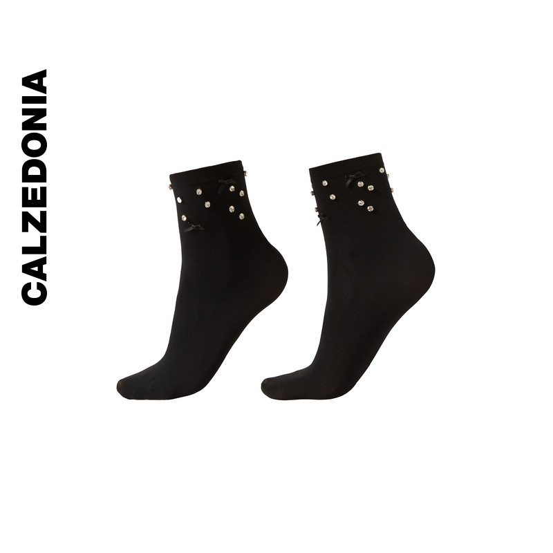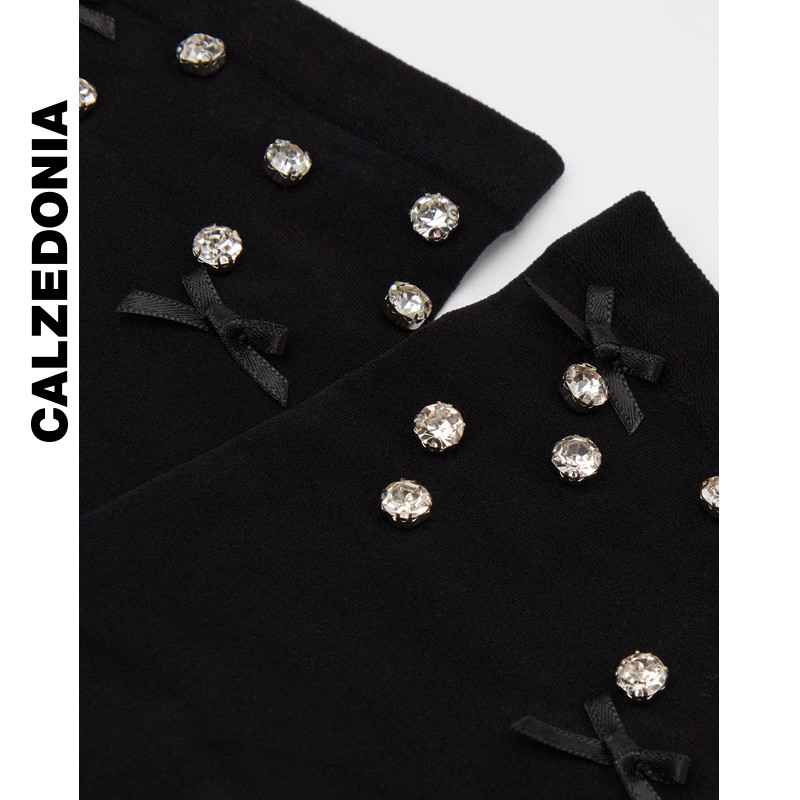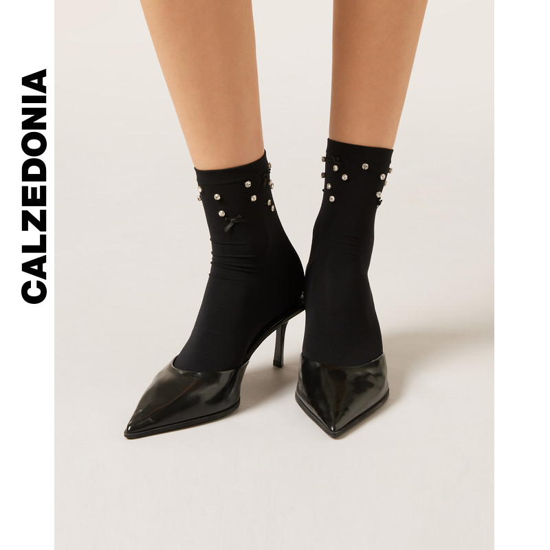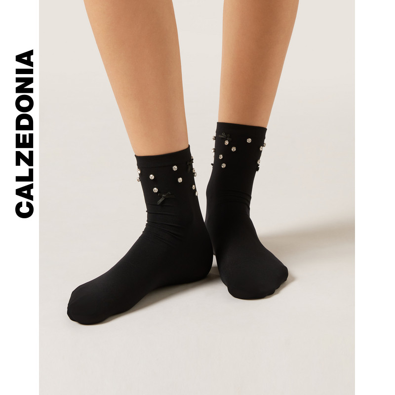 CALZEDONIA卡泽意袜女士时尚派对贴钻蝴蝶结装饰纯色短袜DCZ076