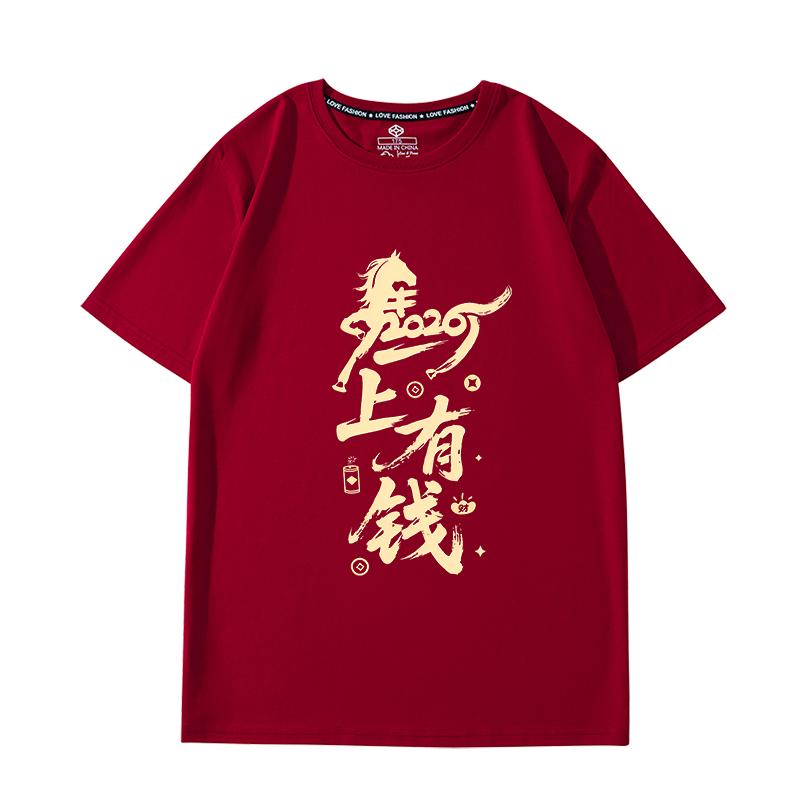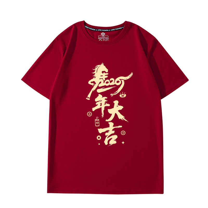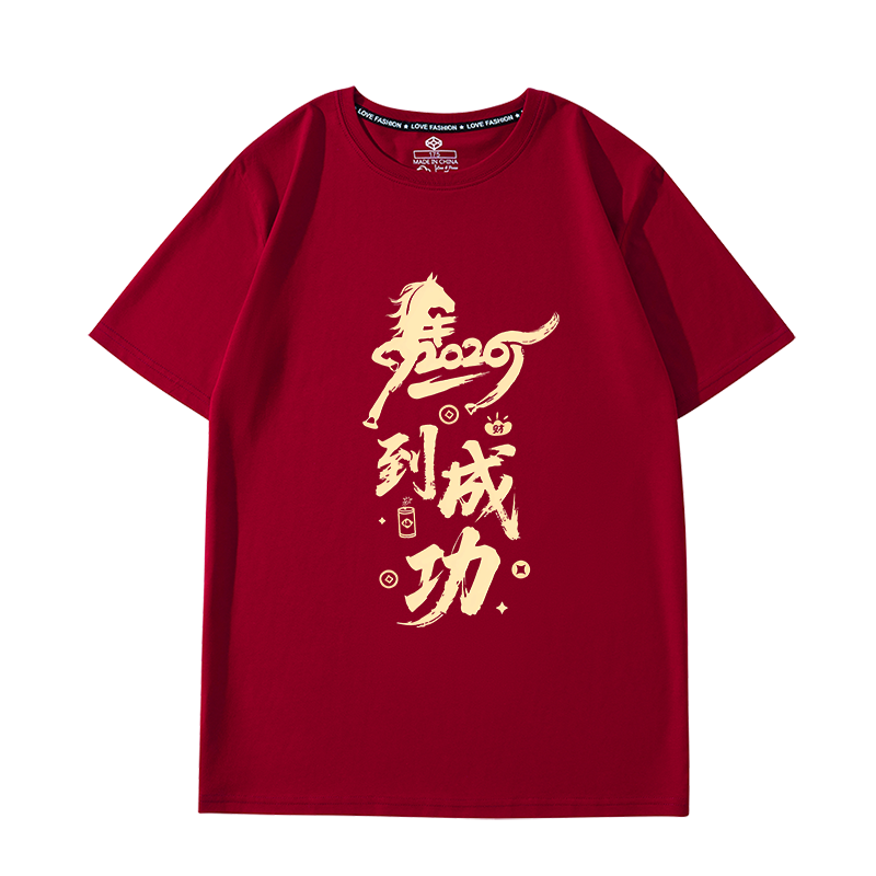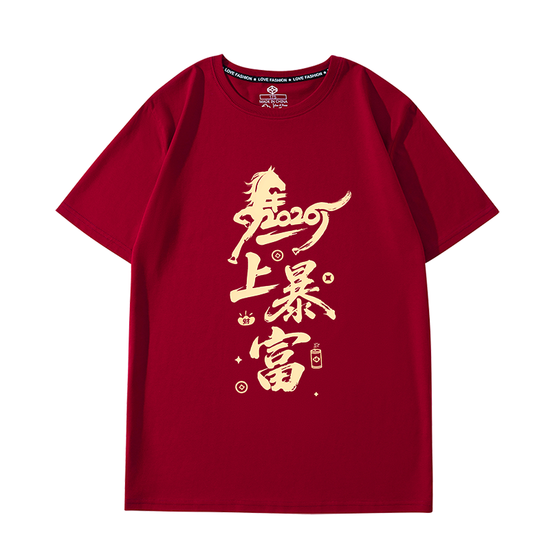 26年马到成功短袖t恤男女新款纯棉酒红色本命年年会过年春节体恤