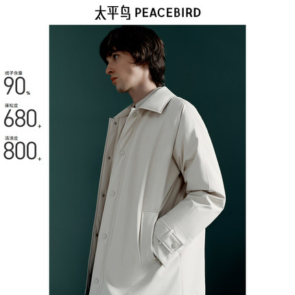 太平鸟男装 商务风衣羽绒服男中长款时尚男士休闲翻领外套男