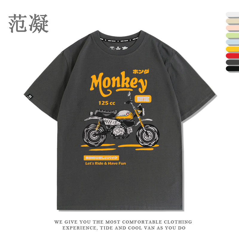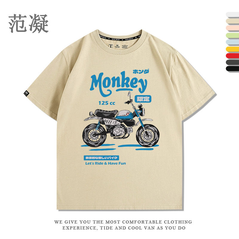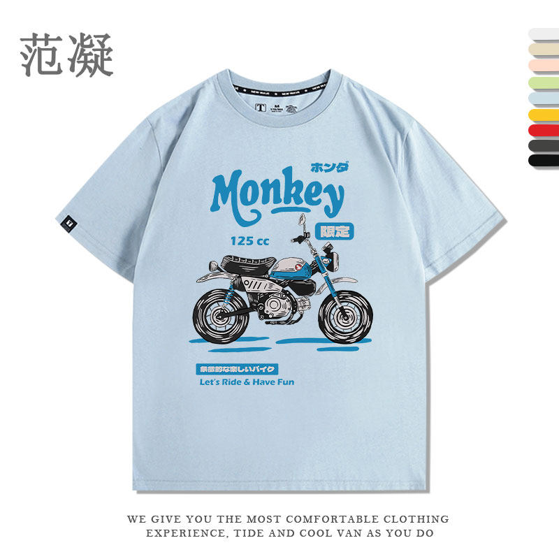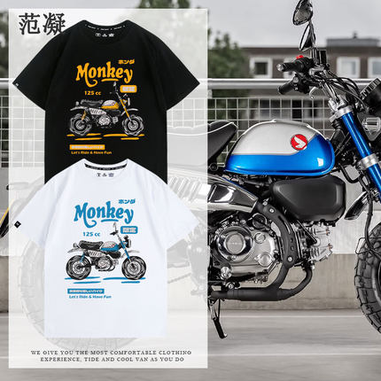 本Hon田da125cc小猴子Monkey蓝黄款迷你小摩托复古版画T恤夏短袖