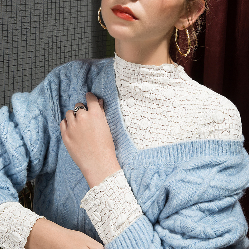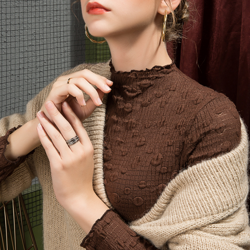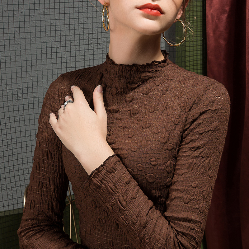2025秋季泡泡蕾丝打底衫女半高领修身秋季内搭洋气性感欧洲站小衫