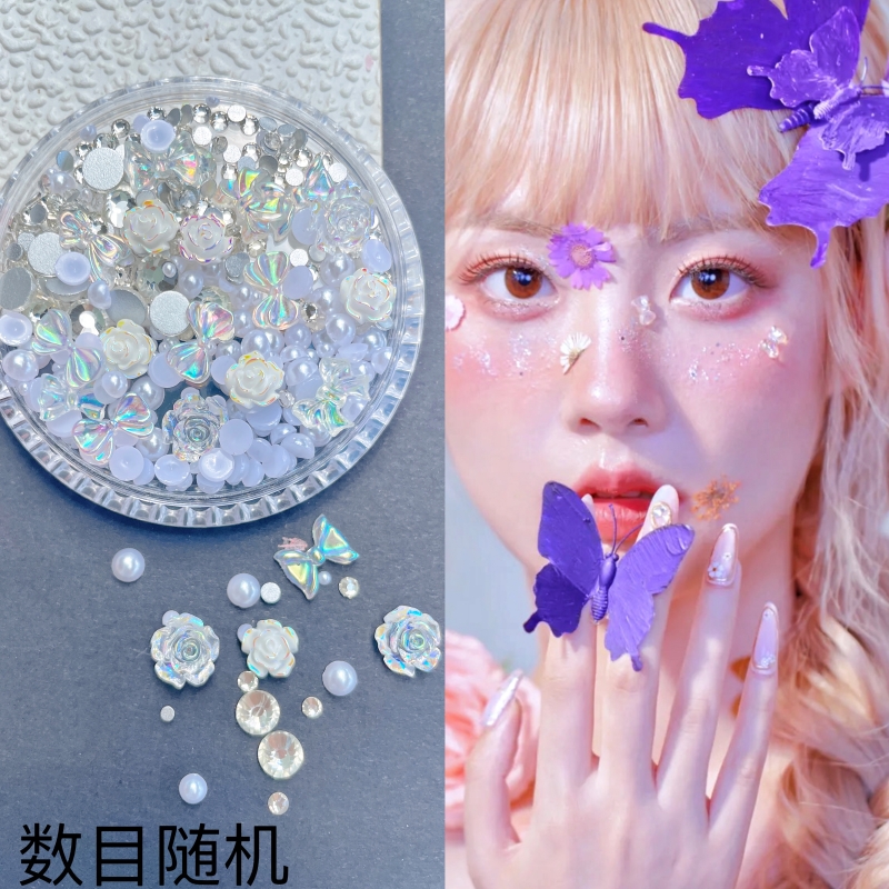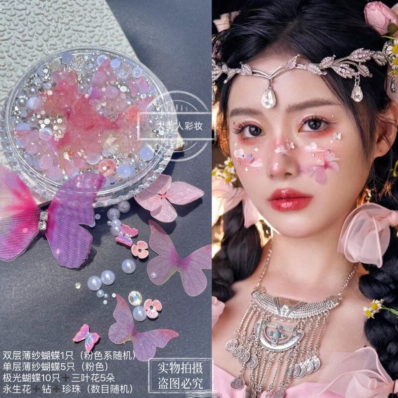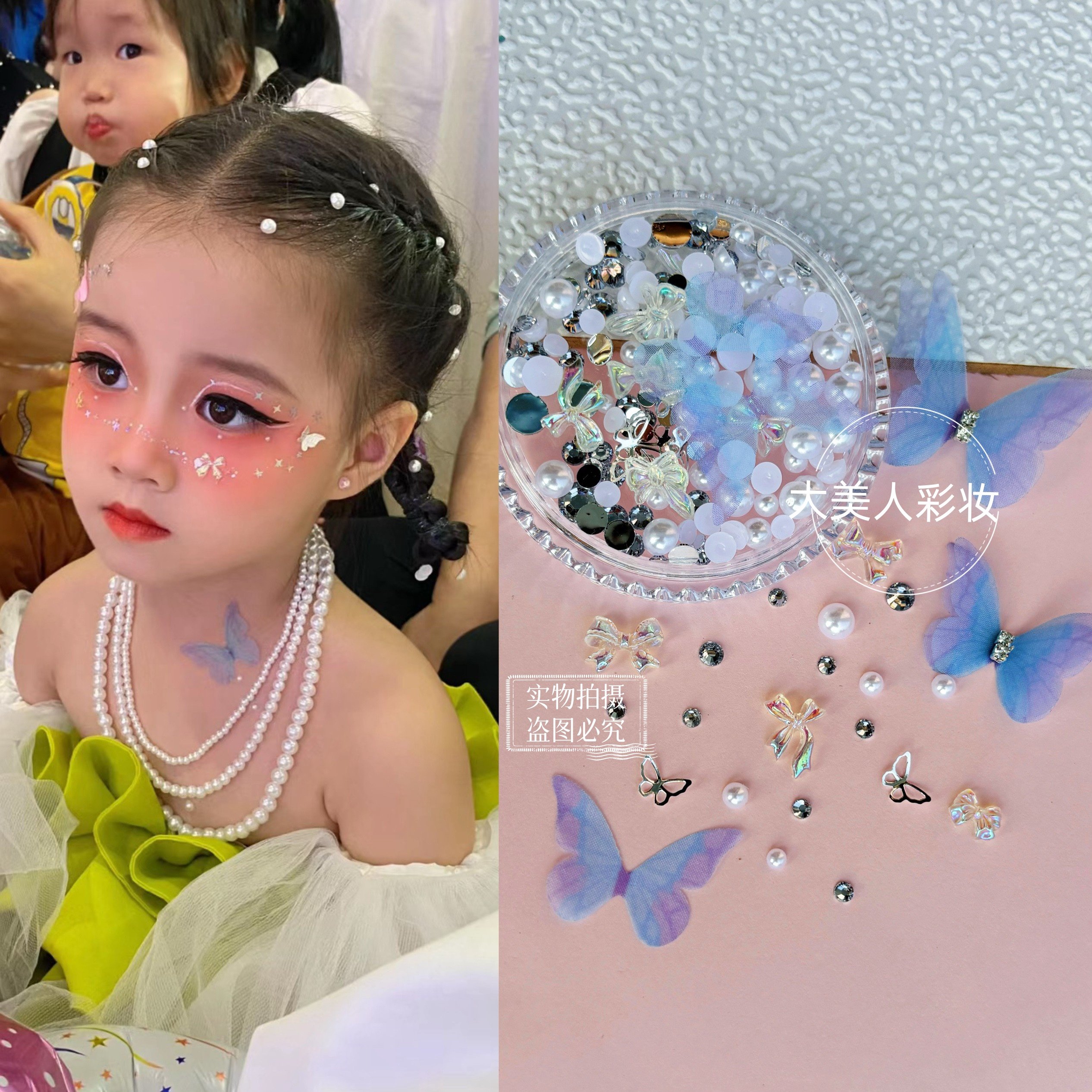 六一儿童节妆容眼妆贴花泪钻蝴蝶舞台拍照化妆面部珍珠脸上贴亮钻