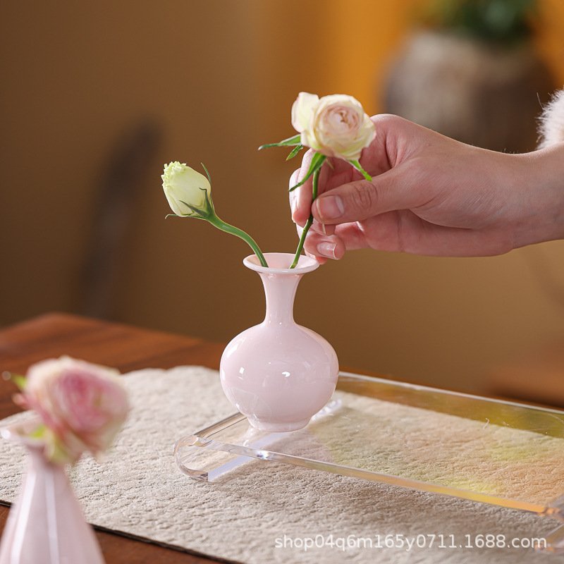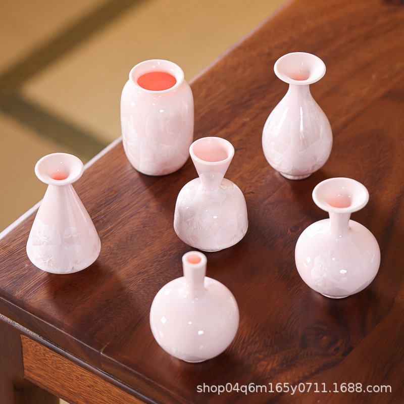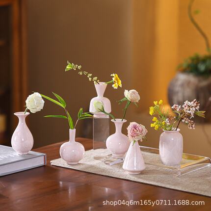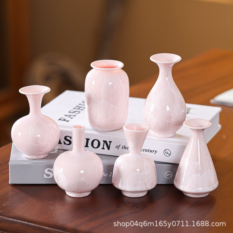 陶瓷迷你小号结晶釉花瓶粉现代简约摆件玄关博古架家用清新装饰品