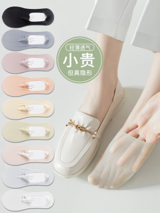 船袜女夏薄款不掉跟防滑纯棉底吸汗无痕冰丝网眼透气浅口隐形短袜