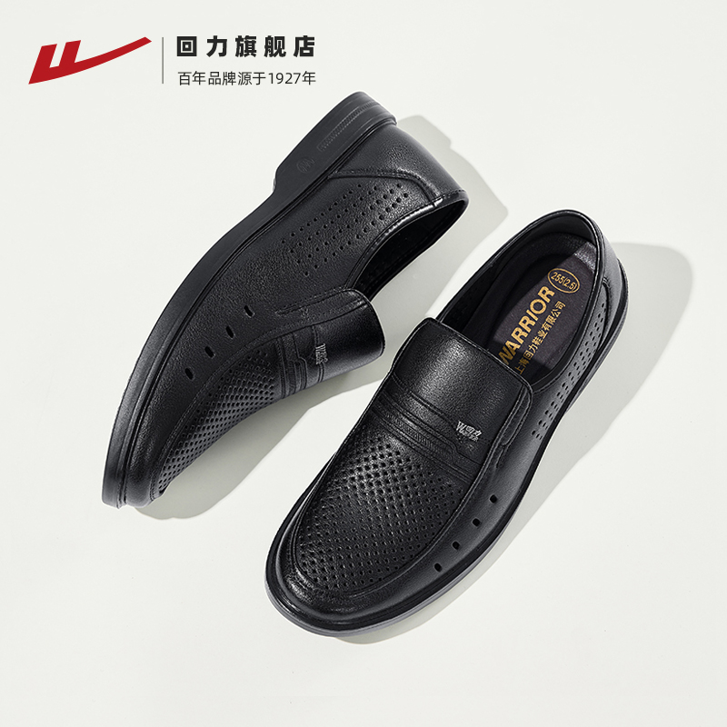 回力皮鞋男款2025夏季新款镂空透气男士鞋子软底黑色正装商务男鞋